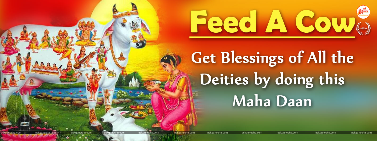 The cow has a special place in Hindu religion and it is believed that all Gods reside in her body. Feeding a cow with green fodder is considered one of the Maha Daan, that is powerful enough to remove all the Grah Doshas or the troubles arising from the malefic effects of the planets.
