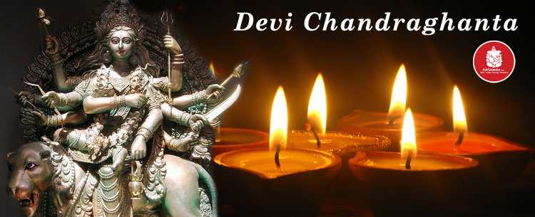 The third manifestation of Sati or Goddess Parvati is Chandraghanta; She is worshipped on the Third Day of Navaratri. She is the married form of Goddess Parvati. Married to Lord Shiva, Mahagauri started to adore a half moon oh her fore head hence called as Chandraghanta, the Half moon on the fore head looks like a bell. Praying her removes all physicall and mental distress.