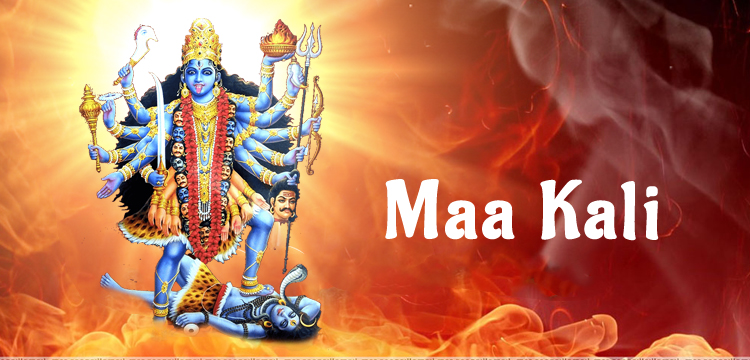 Maa Durga is a dark manifestation; Goddess Kali represents a dissolving power of time and the timelessness of deep meditation. Kali is beyond any norm and convention. Dark as the night, dancing on Shiva, tongue thrust out with a garland of skulls. She represents the calm of meditation where no thoughts exist except for the awareness of infinite space.