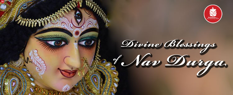 She is One of the most violent of all the manifestations of Parvati, her dark complexion, big red eyes, open red tongue hanging out her mouth, Kalratri Maa has four hands, the two left hands are shown holding a cleaver and a torch, while, her two right hands are in the giving and protecting Mudra. Her hair open, long, loose and scattered. Along with a shiny necklace, this shines like moon. Furthermore, Kalratri has three eyes, that emanates rays that are somewhat like lightning, mounted on a donkey, she kills all the demons who come her way