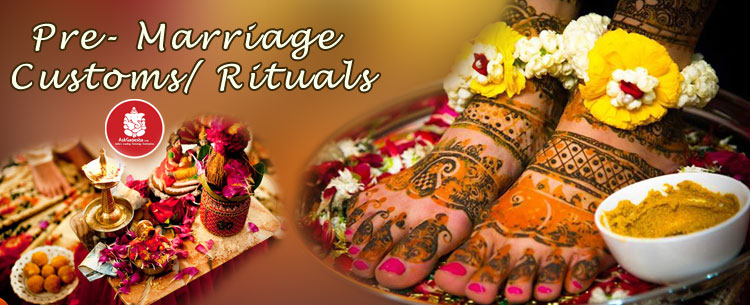 This ceremony is performed a few days prior to the wedding. A mixture consisting of turmeric powder mixed with powder of Sandalwood, Milk, with rose water and Rose petals. This mixture is then applied to groom and bride at their respective places, by their respective families, friends and well- wishers. The mixture is then applied on the neck, face, hands and legs of the groom and bride. It is believed that turmeric brightens the skin colour. And at the same time it is also believed that the turmeric possesses medicinal values, which kills any and every sort of ailments.