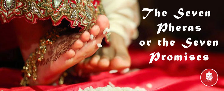 The 7 Pheras or Saptpadi called in some cultures is a unique concept of bride and groom taking seven wows together and promising seven pledges, for the life time. These pheras are carefully crafted with a Matrimonial knot is tied.