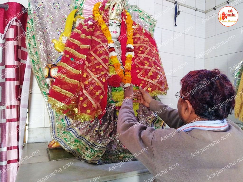 The puja services includes: Kalash Sthapana, Gath Sthapana, Panchang Sthapana, invocation of Goddess, Ganesh pujan, Navgrahas Pujan, 108 chants of the each planetary mantra, in the main kalash the idol of Durga at the same time the Durga Yantra. Chants of Durga mantra, Durga Sahastranam and Strota recitation, and performing of Homam and Aarti are done and then offering flowers to Goddess is made.