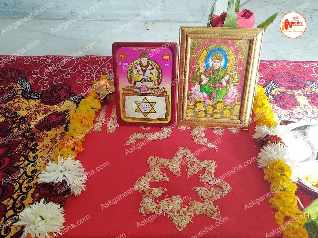 It is best to perform this puja on the day of Diwali. This puja can also be performed on Fridays but if one is performing this Puja specifically to come out of financial constraints or huge losses and seek the help of Lakshami Kubera to pay debts and gains in business, then special Muhurat should be sought. Contact Askganesha for such an auspicious time and day.