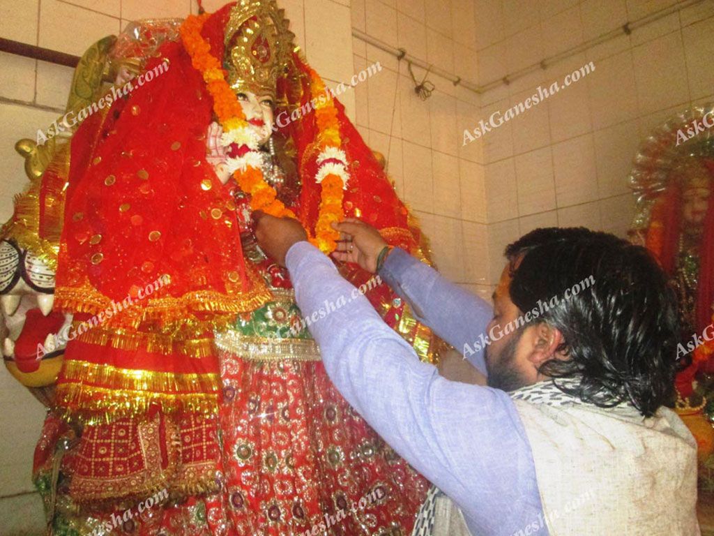 According to the Puranas, all the combined powers of Lord Brahma, Lord Vishnu and Lord Shiva took the shape of a fierce war Goddess to slay the demon Mahishasura. These powers got converged at the Ashram of Rishi Katyayana, who gave the shape to the powers in form of the Goddess. Thus the Goddess was named after the Rishi Katyayana as Katyayani. Some believe that she was first of all worshipped by Rishi Katyayana so, she was Named Katyayani.