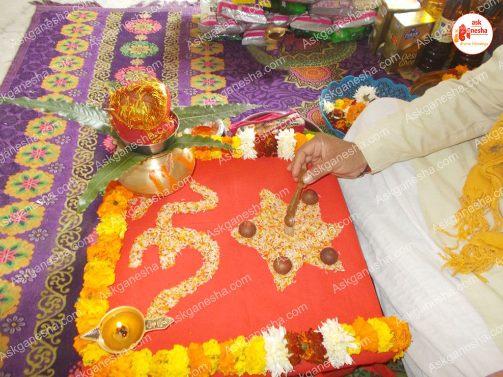 In this step, a Yantra is placed near the havan kund and the deities. The priests chant the holy mantras known as Beejmantra to please the Lords. The Beejmantra is chanted with the purpose of energising tha yantra. The yantra, then, can be used to remove any kind of problem for which the Yagya is being performed or to fulfil the wishes at hand.