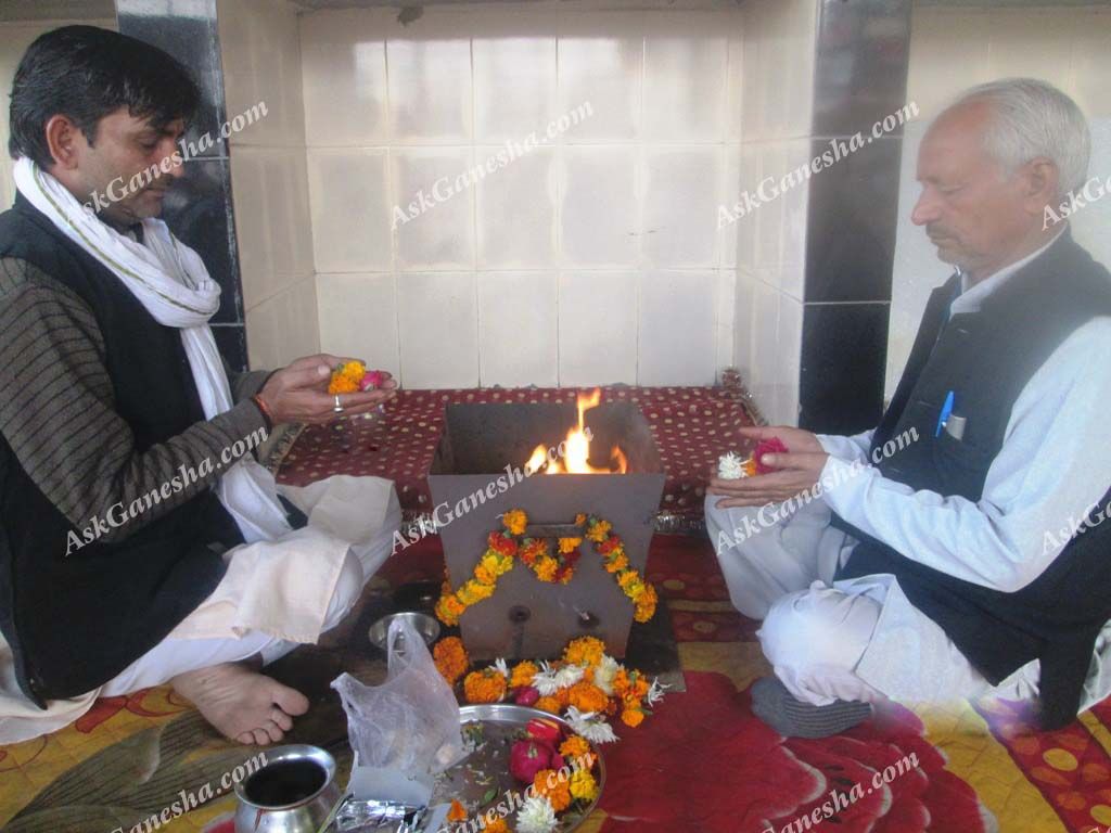 This is an aesthetic step which brings us closer to the yagya. In this procedure, the priests and the attendees offer flowers to the dieties’ statues or photographs. Offering flowers in the feet of the Gods/Goddesses is a kind of showing affection and respect towards them. It is an act of pleasing the deities.