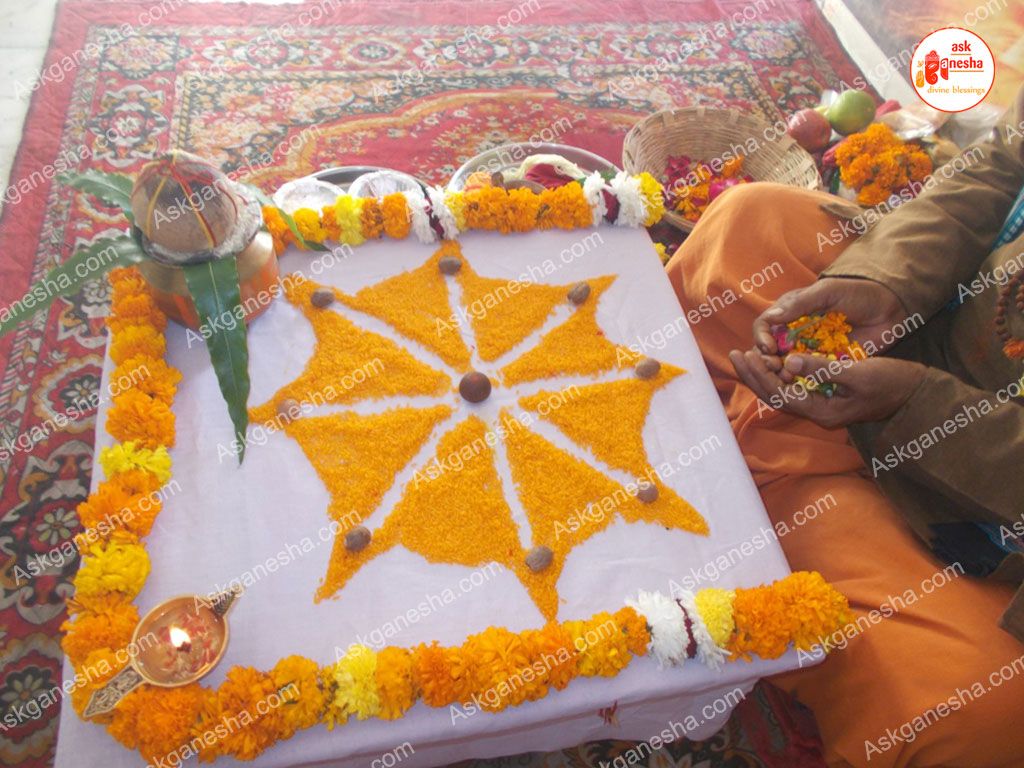 In this step, a Yantra is placed near the havan kund and the deities. The priests chant the holy mantras known as Beejmantra to please the Lords. The Beejmantra is chanted with the purpose of energising tha yantra. The yantra, then, can be used to remove any kind of problem for which the Yagya is being performed or to fulfil the wishes at hand.