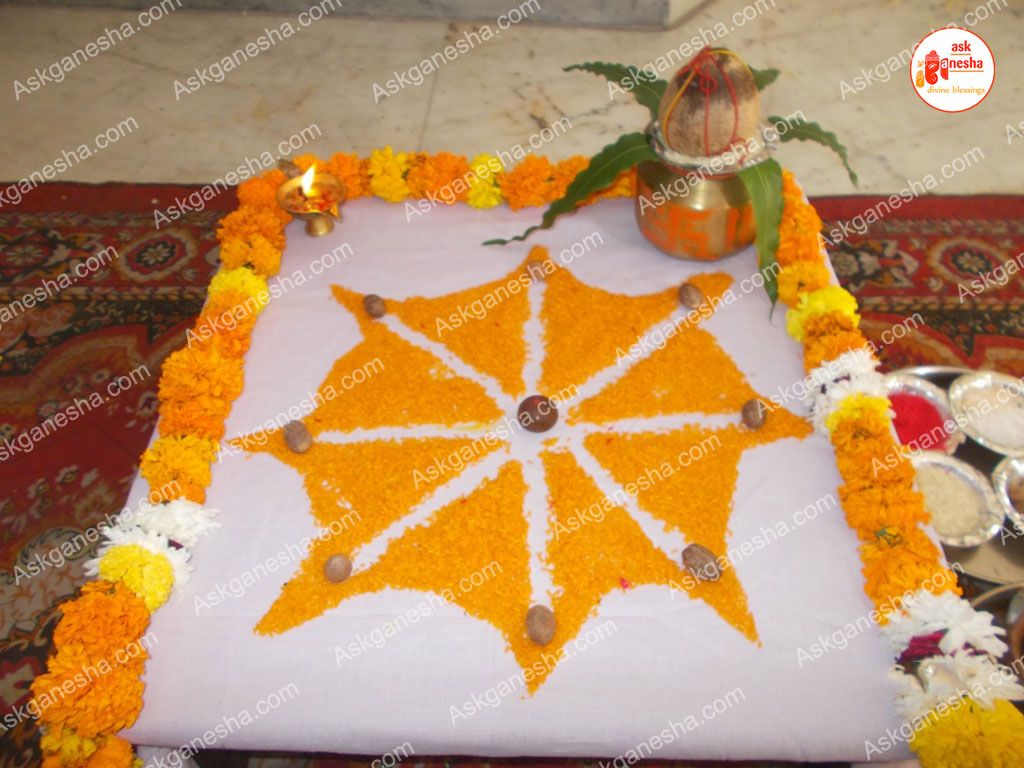 Sthapana is the second step wherein the priests performing the yagna/Yagya, installs the statue or photograph of the deities for whom the Yagya is being perfomed. This step comes once the priests successfully invites the Lords to the Pooja through Mantra Chanting. This step is crucial as the statues installation builds the foundation for the various holy offerings to be performed.