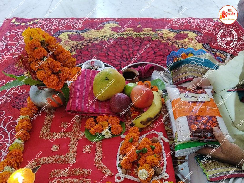 - This puja, when done at home, blesses with good health, peace, and prosperity.