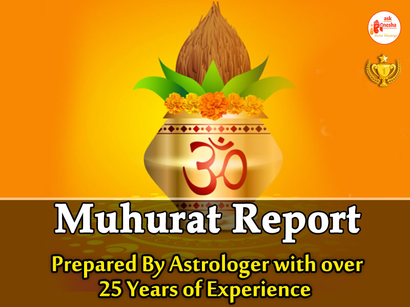 Important work should be started in an auspicious calculated time: Muhurat - which helps in better outcome. We, at Askganesha, calculate precise auspicious Muhurat for any important event of your life. The events for which people reach out to us for the Mahurat are Marriage, Travel, Start of business or job, Filing of Applications, going for treatment, Entering into new house, buying of vehicle etc. You too can get the cosmic energy in your favour by starting the work in the auspicious time. By clicking the button below you can request the Mahurat Report to help you get started on the right time.