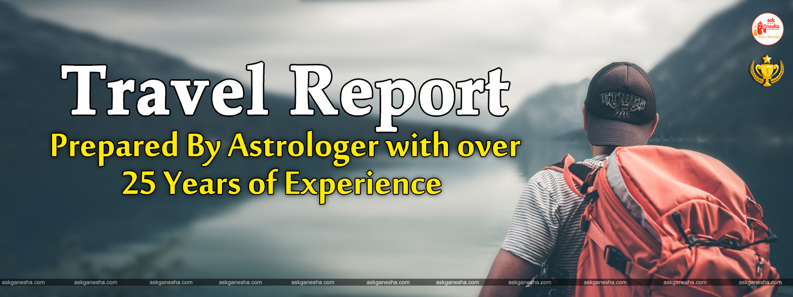 Our Travel Report will enable you to figure out the time periods when you are likely to journey to a different territory. It would let you know whether there are combinations of moving in another country in your horoscope or not or where you will receive more success - in your home country or in foreign land. Our astrologer AskGanesha.com will help you find answers to your travel queries.