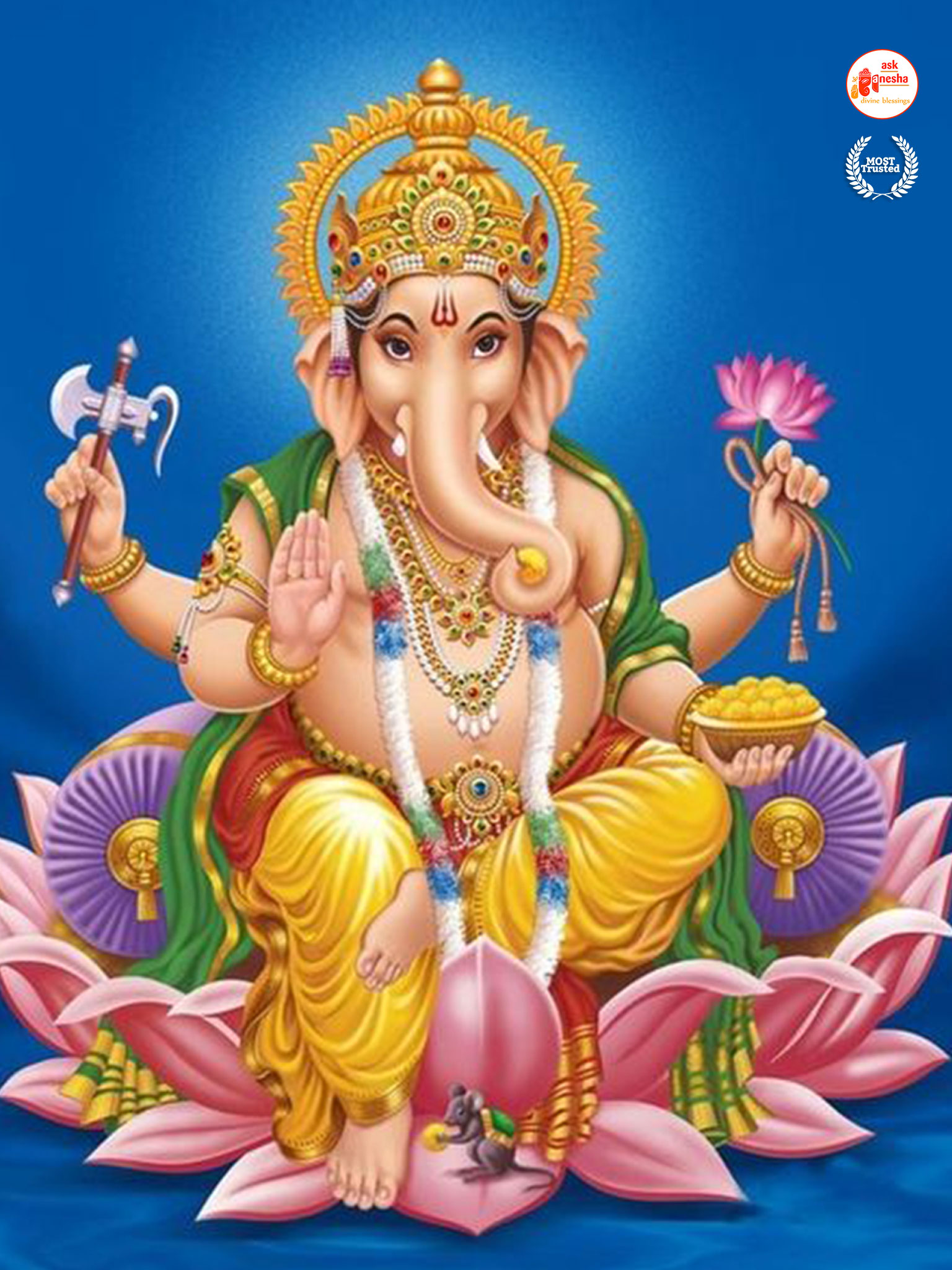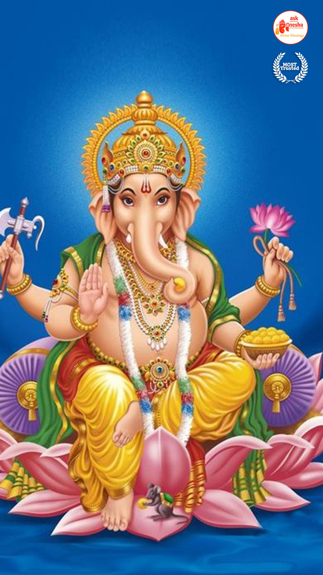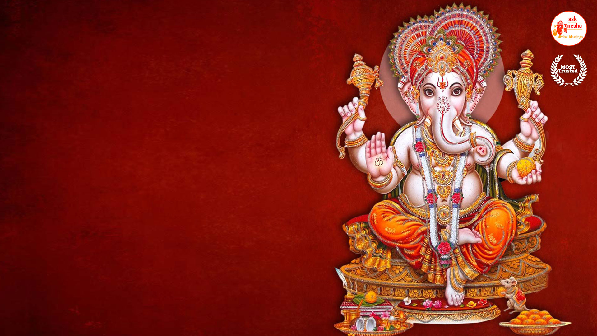 He is depicted as the God with the head of an elephant with one tusk only. He rides a mouse and holding an axe, noose and most of the time holding a sweet in his trunk. Askganesha has brought some beautiful wallpapers of Lord Ganesha which can be installed on your electronic devices like mobiles, laptops or tablets etc. one can choose from many different aspects of Ganesha depicted in these wallpapers. These wallpapers can be downloaded free of any cost and can become your all-time companions. You can have the Darshan of your favourite Lord any time and anywhere. Whenever you are stuck somewhere or in something have the Darshan of Vighanharta and say your prayer and seek his divine help. You certainly will come out of your trouble as all your obstacles will be removed.