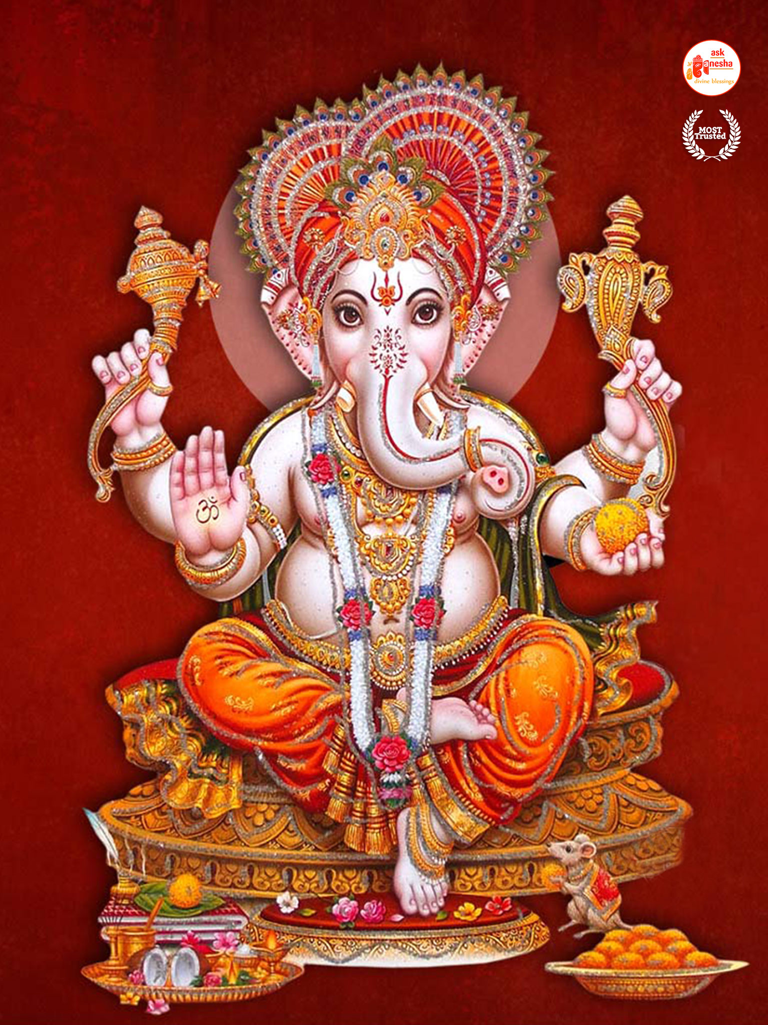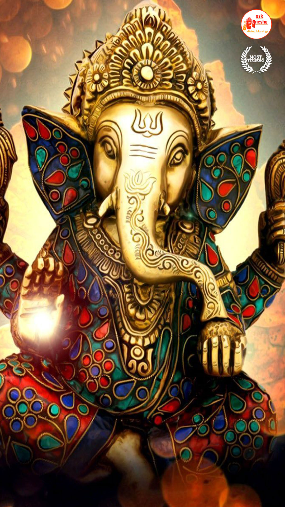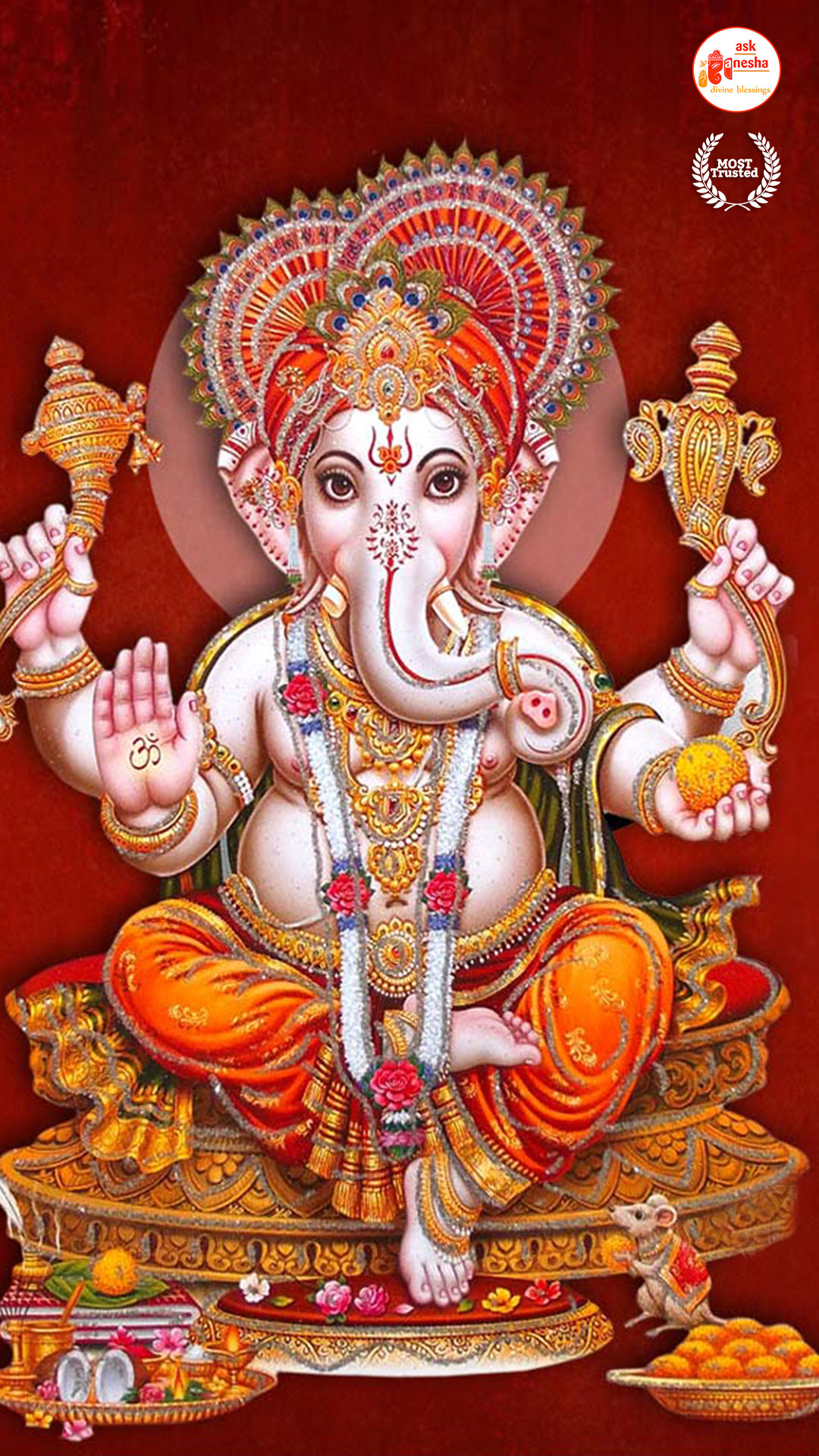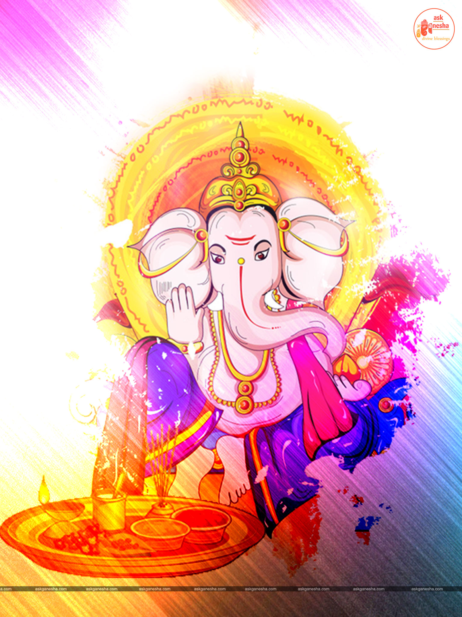 He is depicted as the God with the head of an elephant with one tusk only. He rides a mouse and holding an axe, noose and most of the time holding a sweet in his trunk. Askganesha has brought some beautiful wallpapers of Lord Ganesha which can be installed on your electronic devices like mobiles, laptops or tablets etc. one can choose from many different aspects of Ganesha depicted in these wallpapers. These wallpapers can be downloaded free of any cost and can become your all-time companions. You can have the Darshan of your favourite Lord any time and anywhere. Whenever you are stuck somewhere or in something have the Darshan of Vighanharta and say your prayer and seek his divine help. You certainly will come out of your trouble as all your obstacles will be removed.