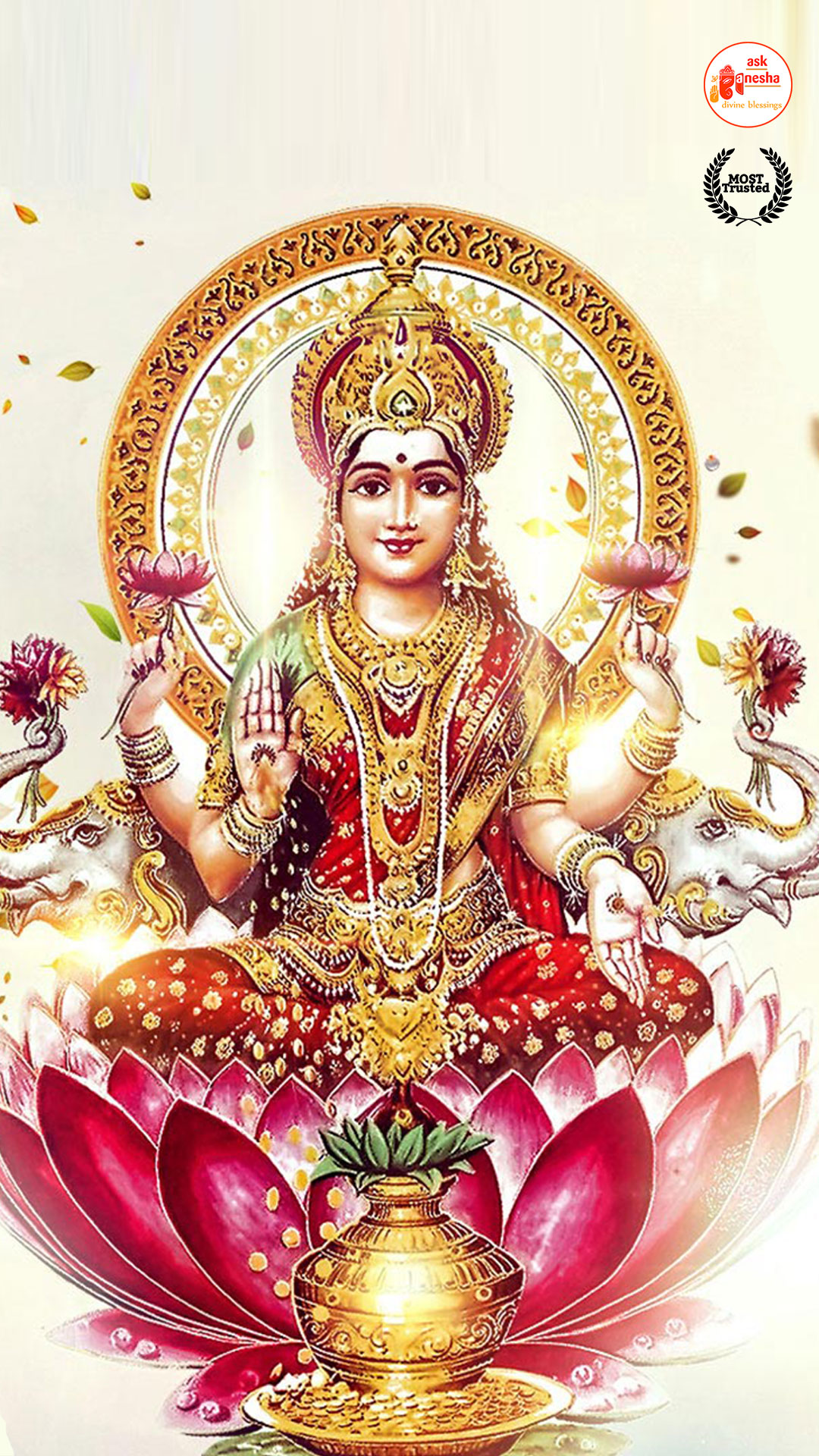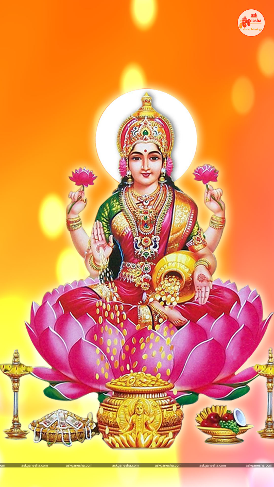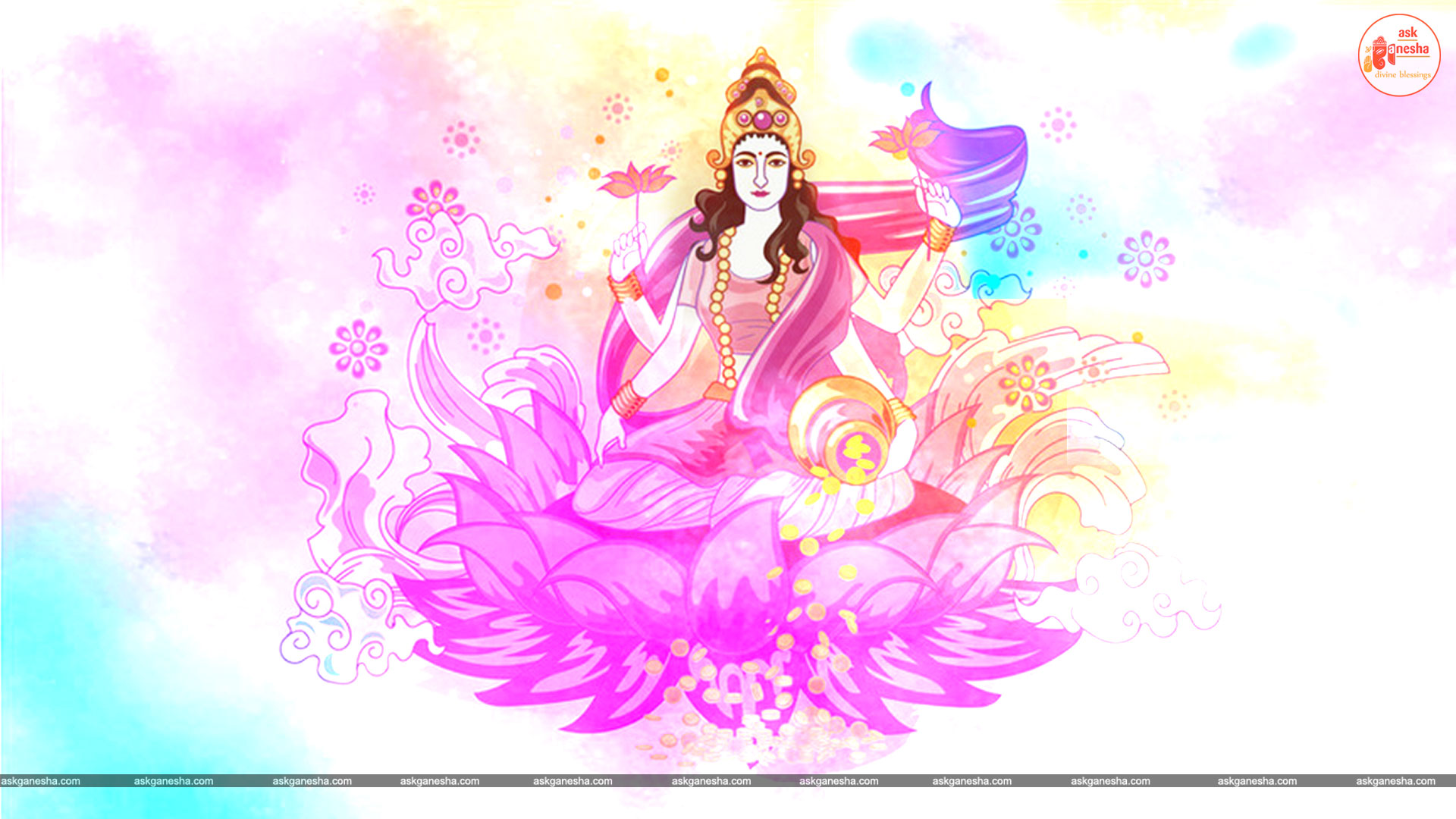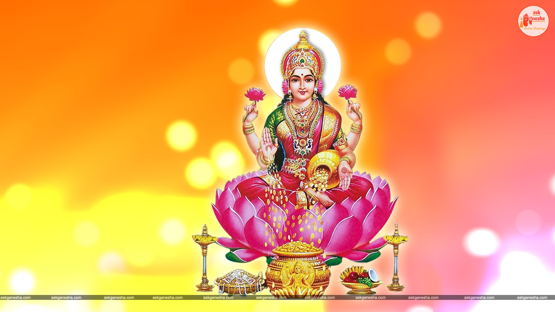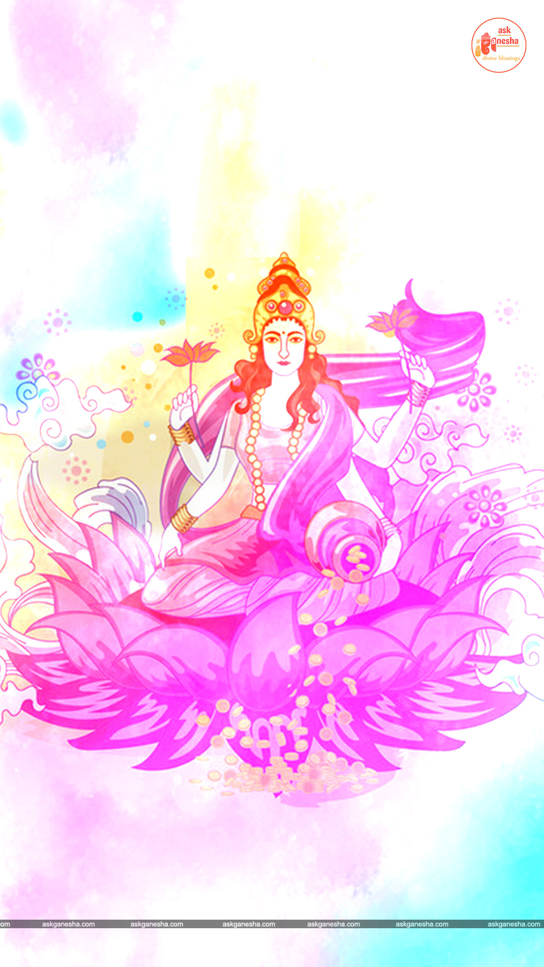 As Devi Lakshami holds a very important place in the life of the Hindus, Askganesha has come up with some special remedial wallpapers of goddess Lakshami to be installed on electronic gadgets like laptops or mobiles or P.C etc. These wallpapers show Goddess Lakshami in her most common generous prosperity showering aspect. You can download these wallpapers free of cost on your electronic devices.