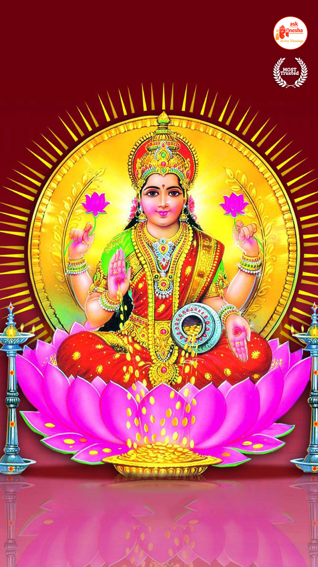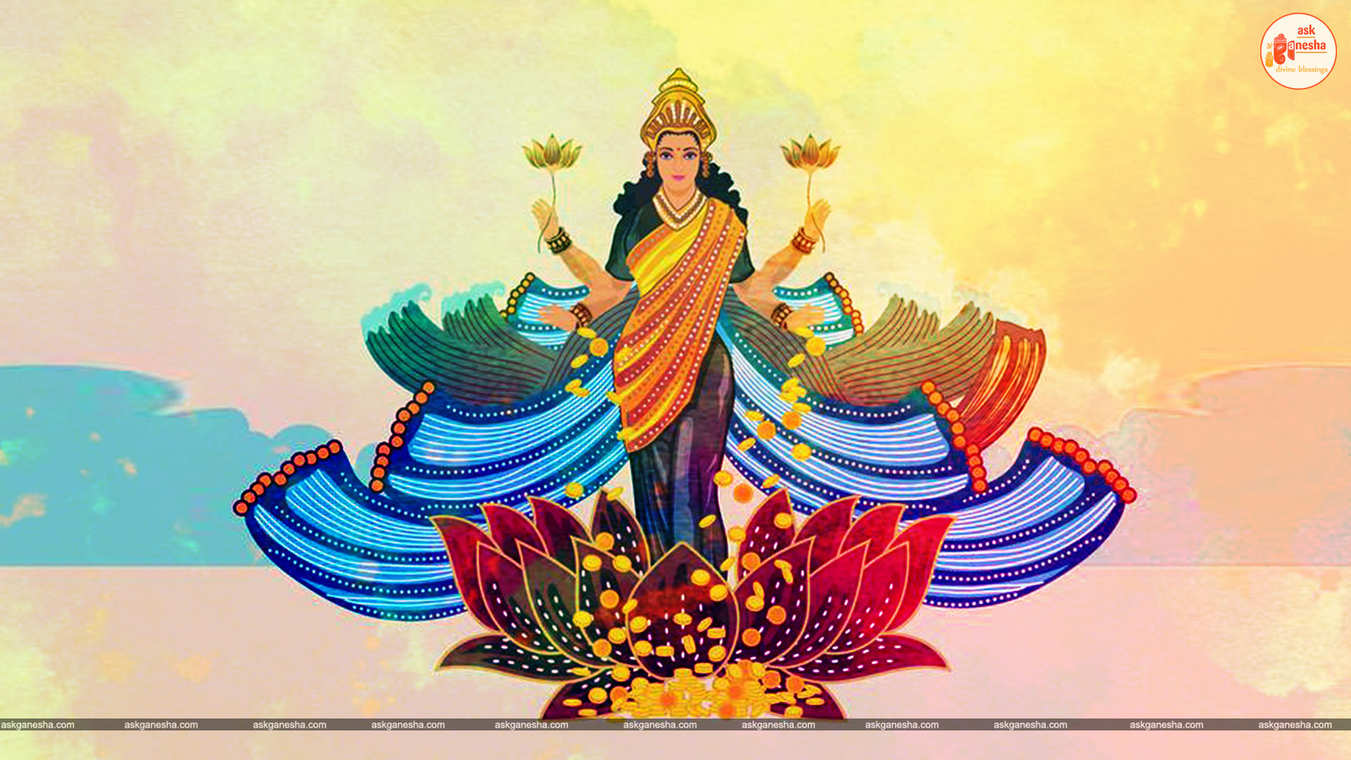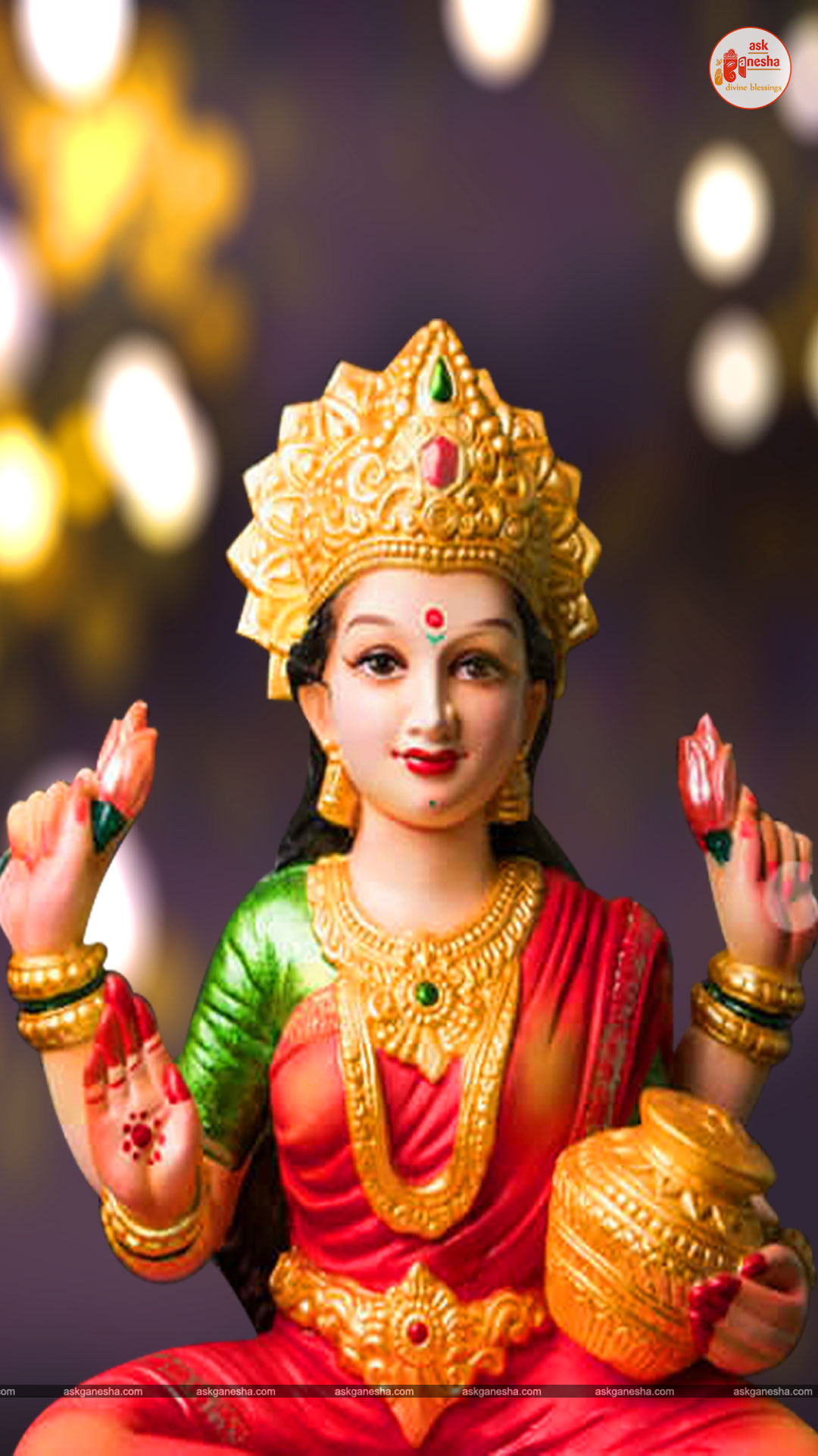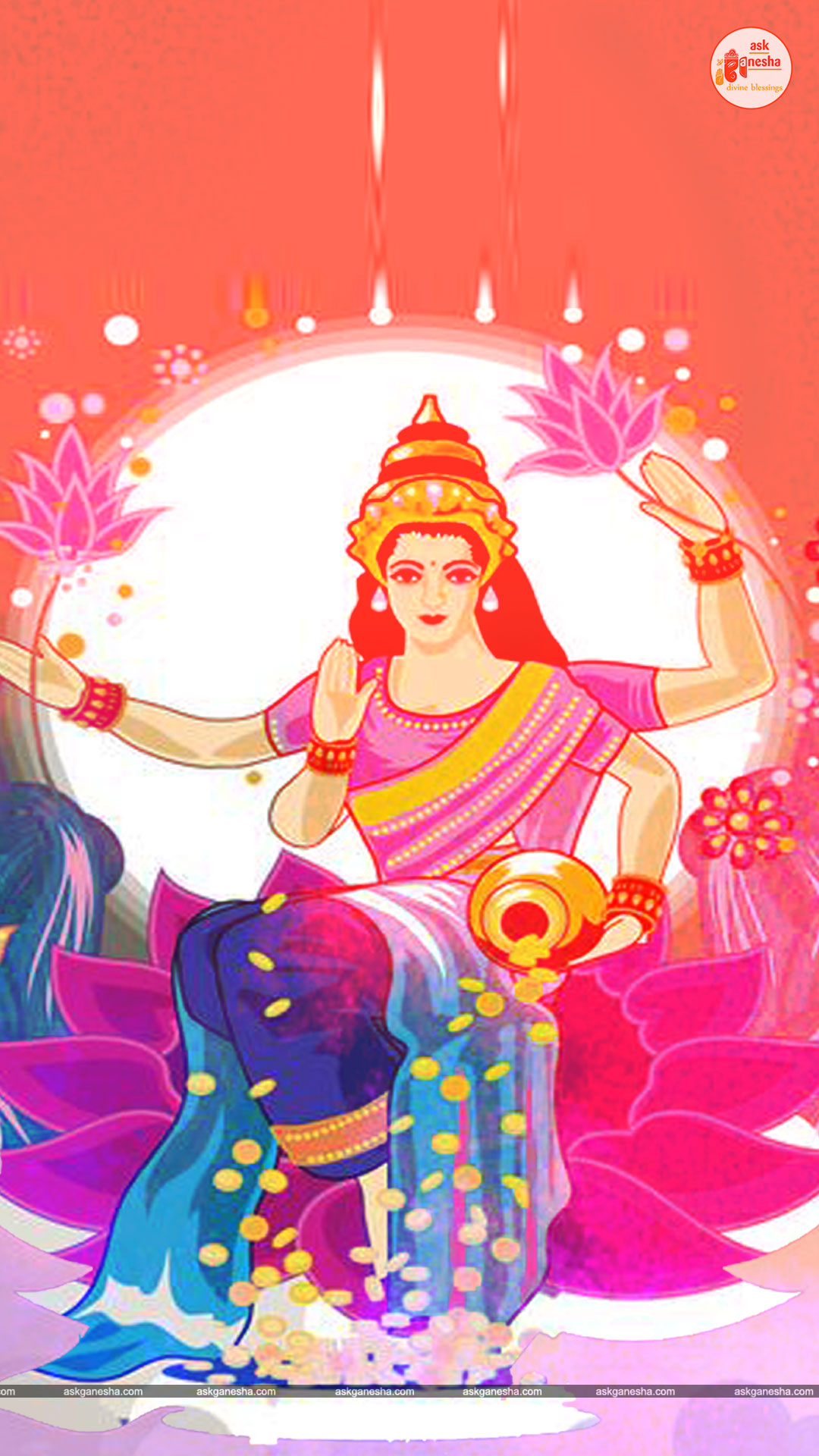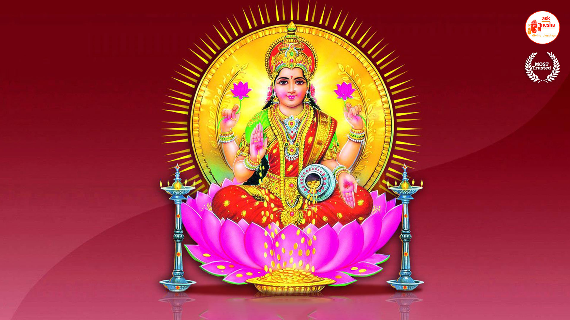 As Devi Lakshami holds a very important place in the life of the Hindus, Askganesha has come up with some special remedial wallpapers of goddess Lakshami to be installed on electronic gadgets like laptops or mobiles or P.C etc. These wallpapers show Goddess Lakshami in her most common generous prosperity showering aspect. You can download these wallpapers free of cost on your electronic devices.