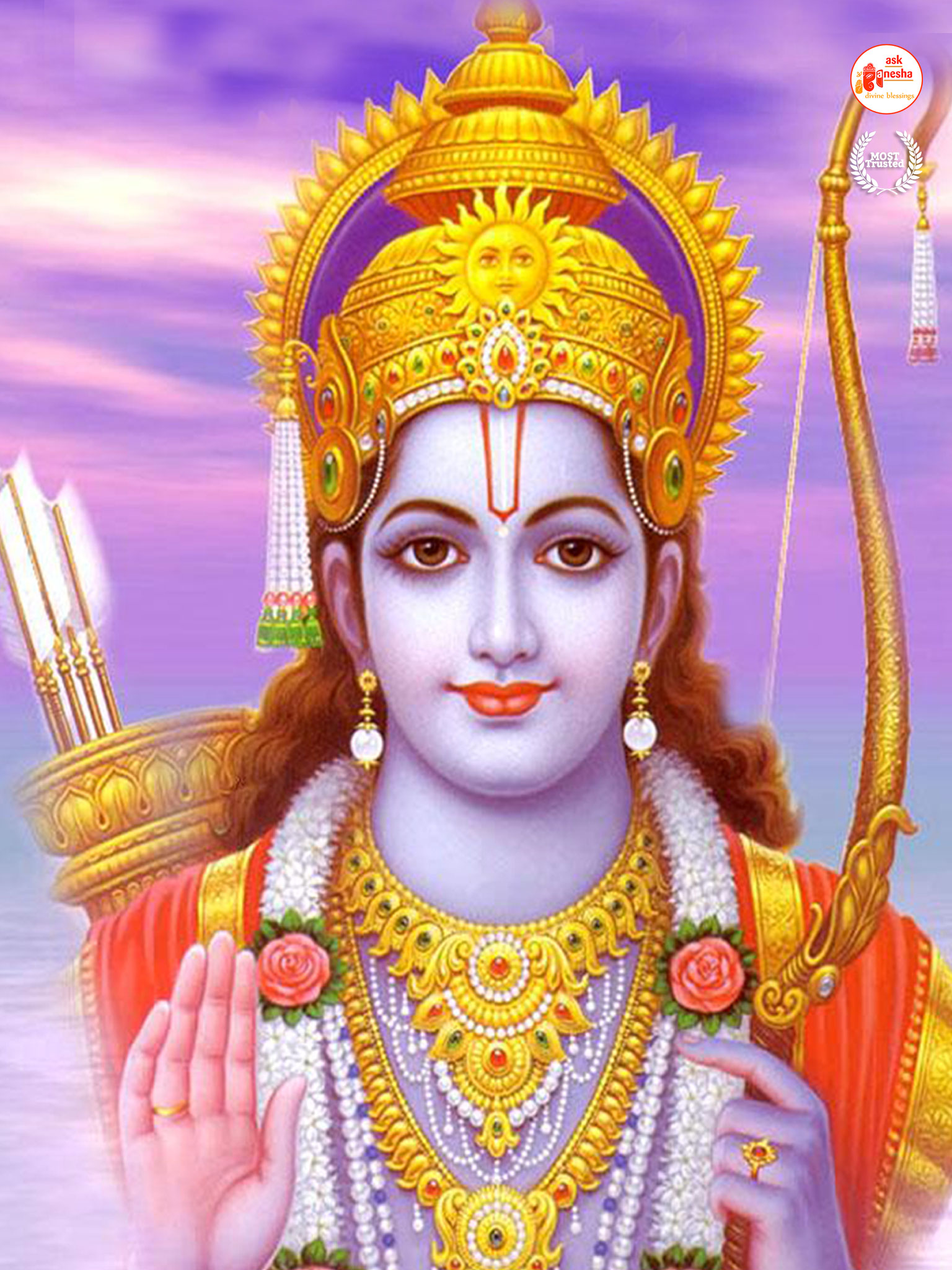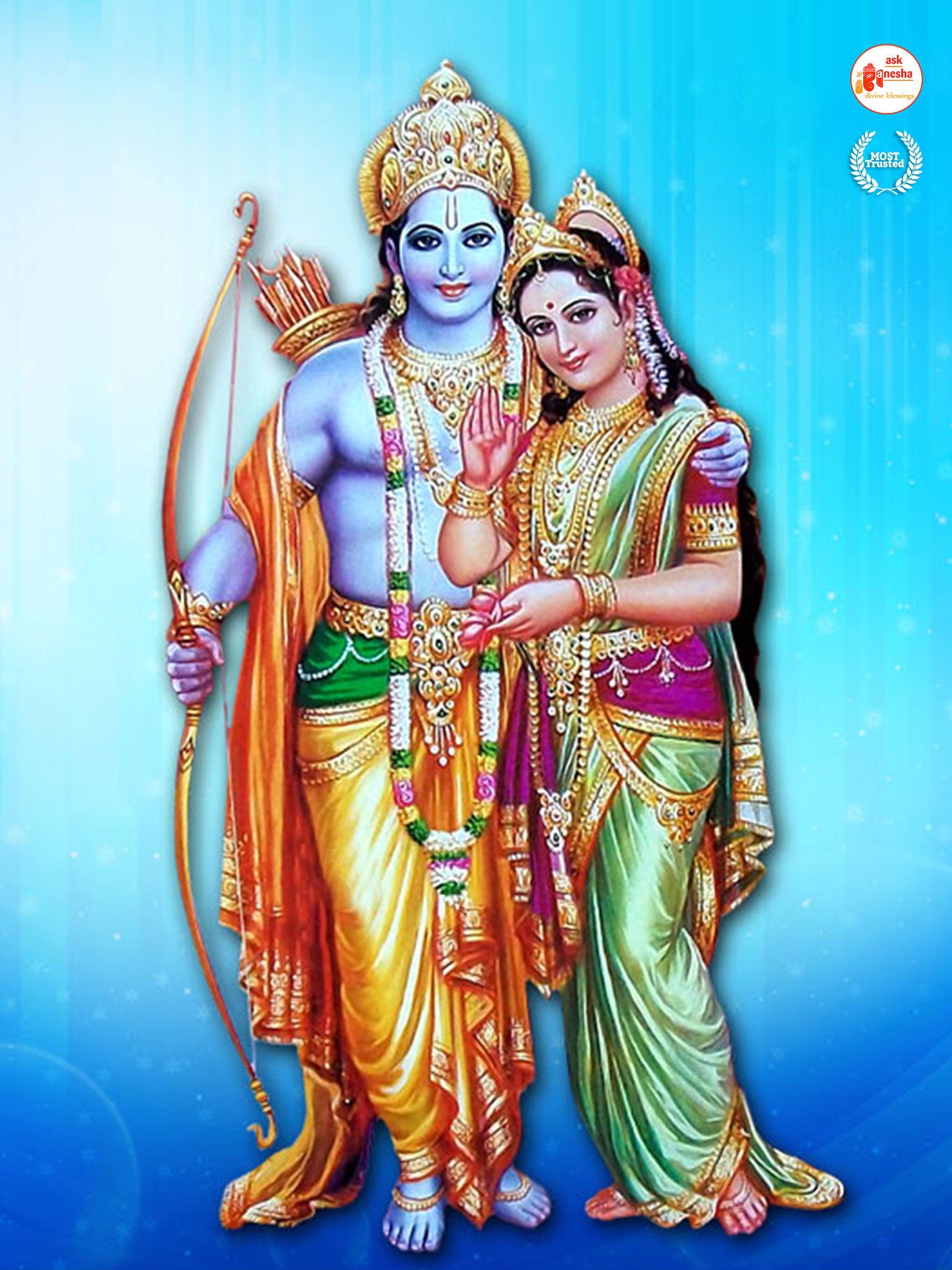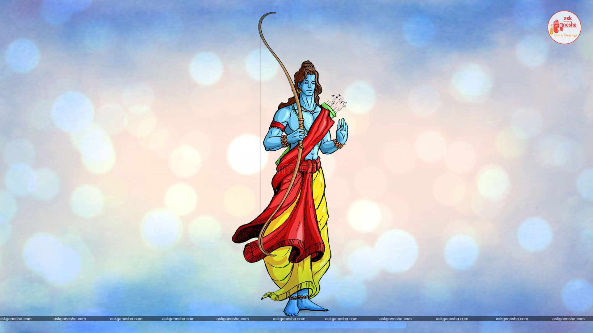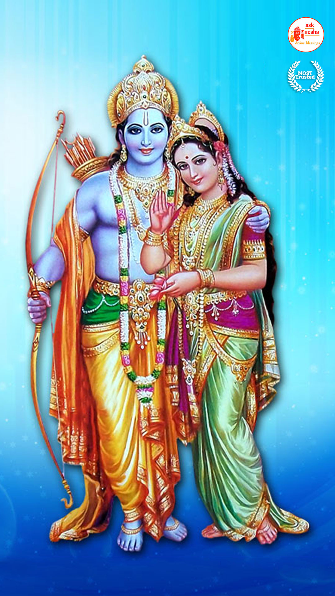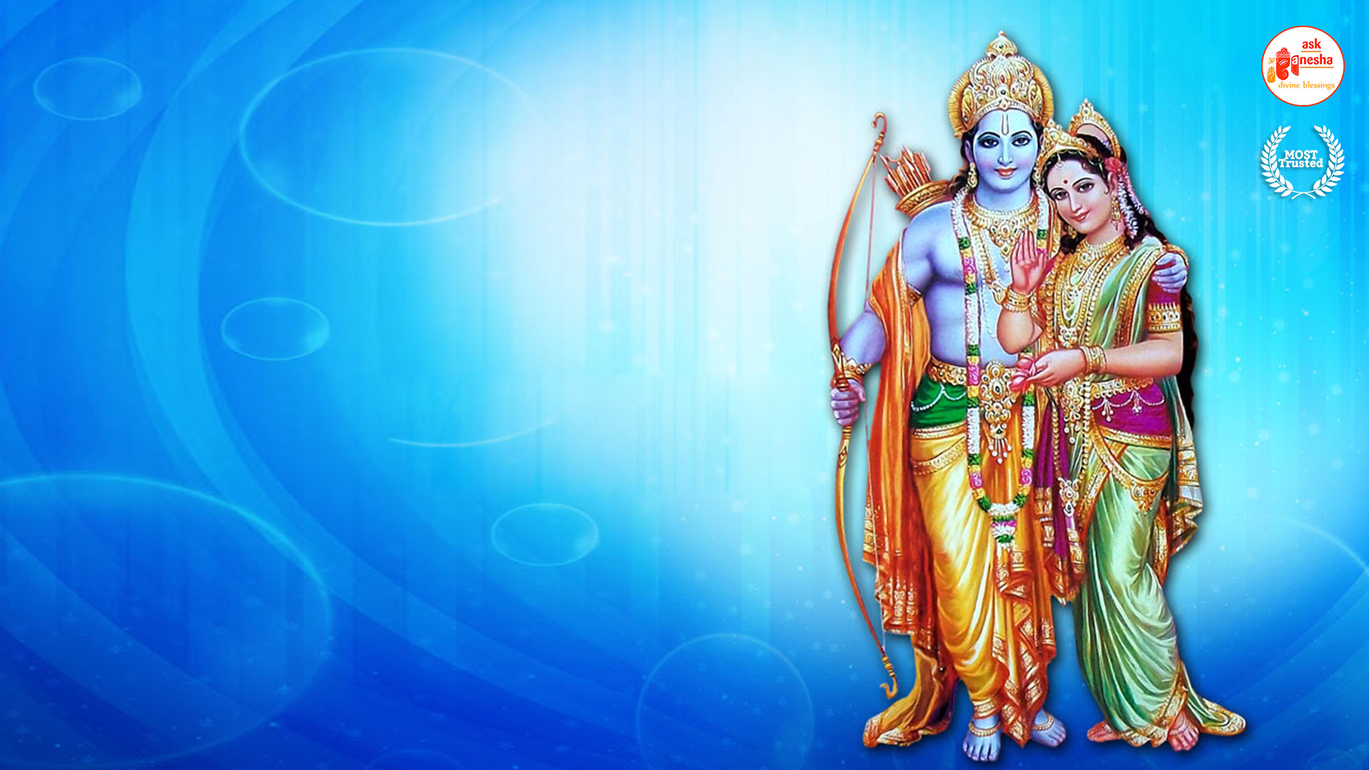 As Lord Ram is the preserver of the universe, people have deep-rooted faith in him and pray to him in their time of troubles. Askganesha has come forward with remedial wallpapers of Lord Rama which can be installed on the electronic gadgets by the devotees of the Lord. These are beautiful wallpapers depicting different aspects of Lord Rama. He is shown as a warrior, finishing all the difficulties and negativities of life. He is shown as a loving husband and a passionate Lord to his devotees showering his love on them.