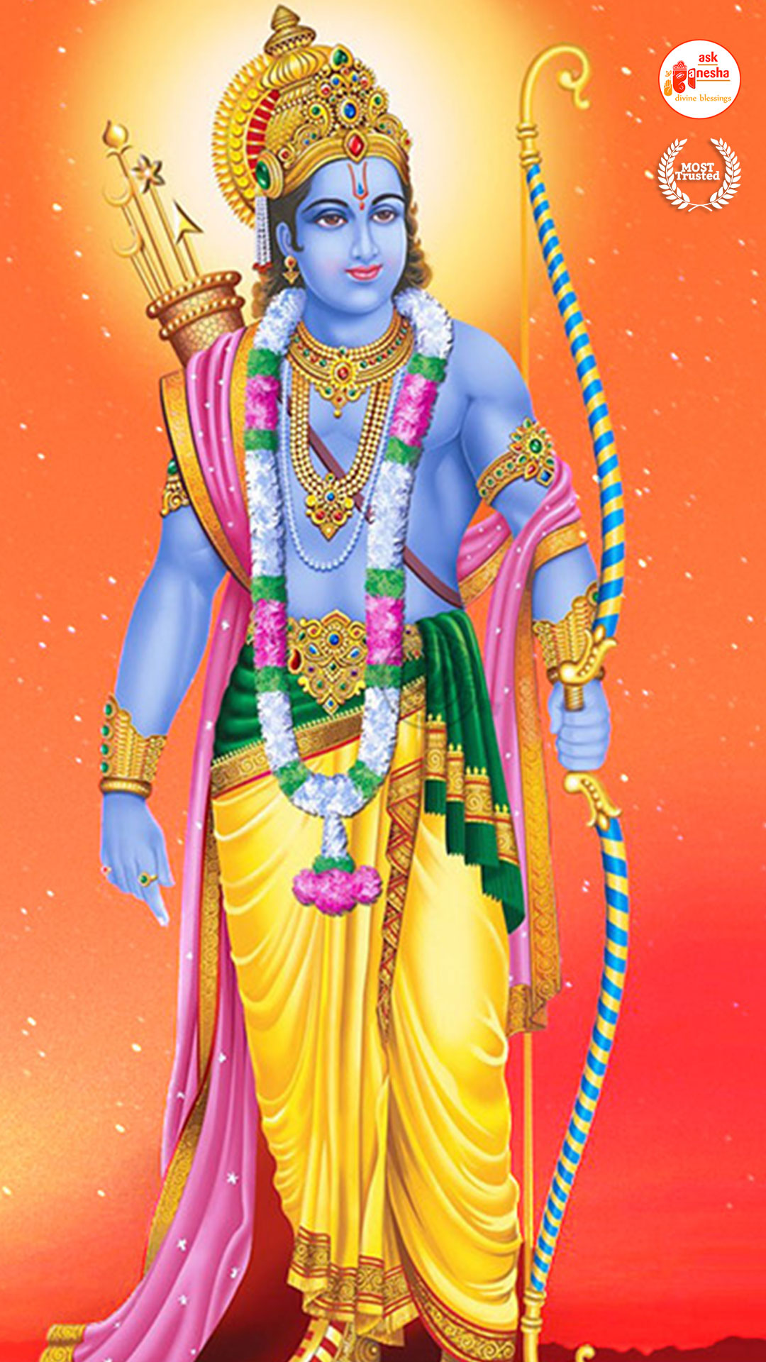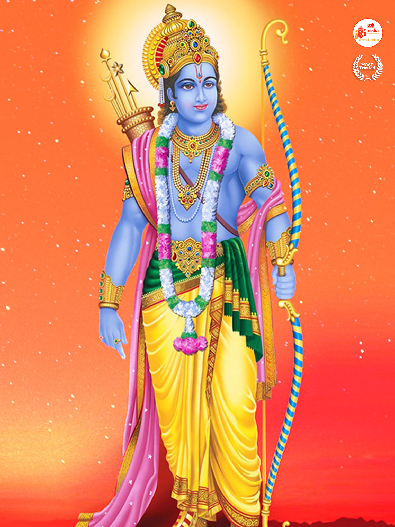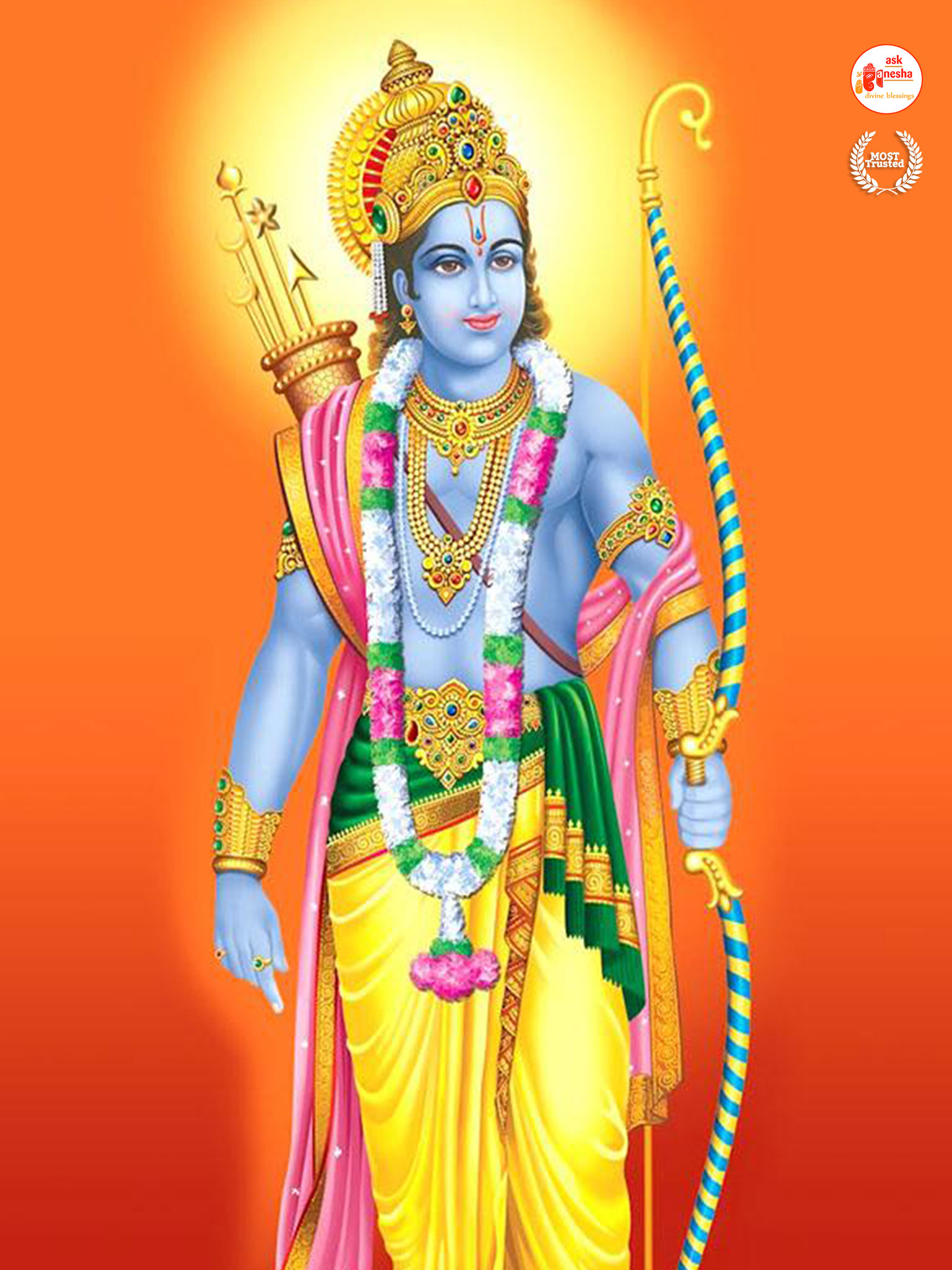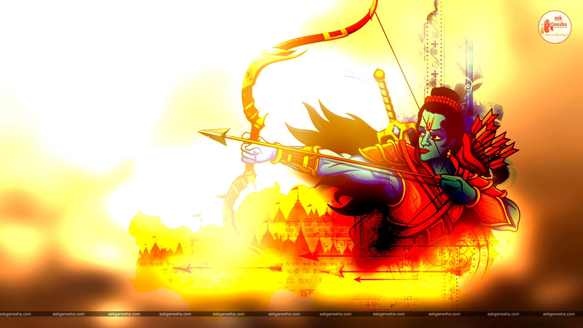 As Lord Ram is the preserver of the universe, people have deep-rooted faith in him and pray to him in their time of troubles. Askganesha has come forward with remedial wallpapers of Lord Rama which can be installed on the electronic gadgets by the devotees of the Lord. These are beautiful wallpapers depicting different aspects of Lord Rama. He is shown as a warrior, finishing all the difficulties and negativities of life. He is shown as a loving husband and a passionate Lord to his devotees showering his love on them.