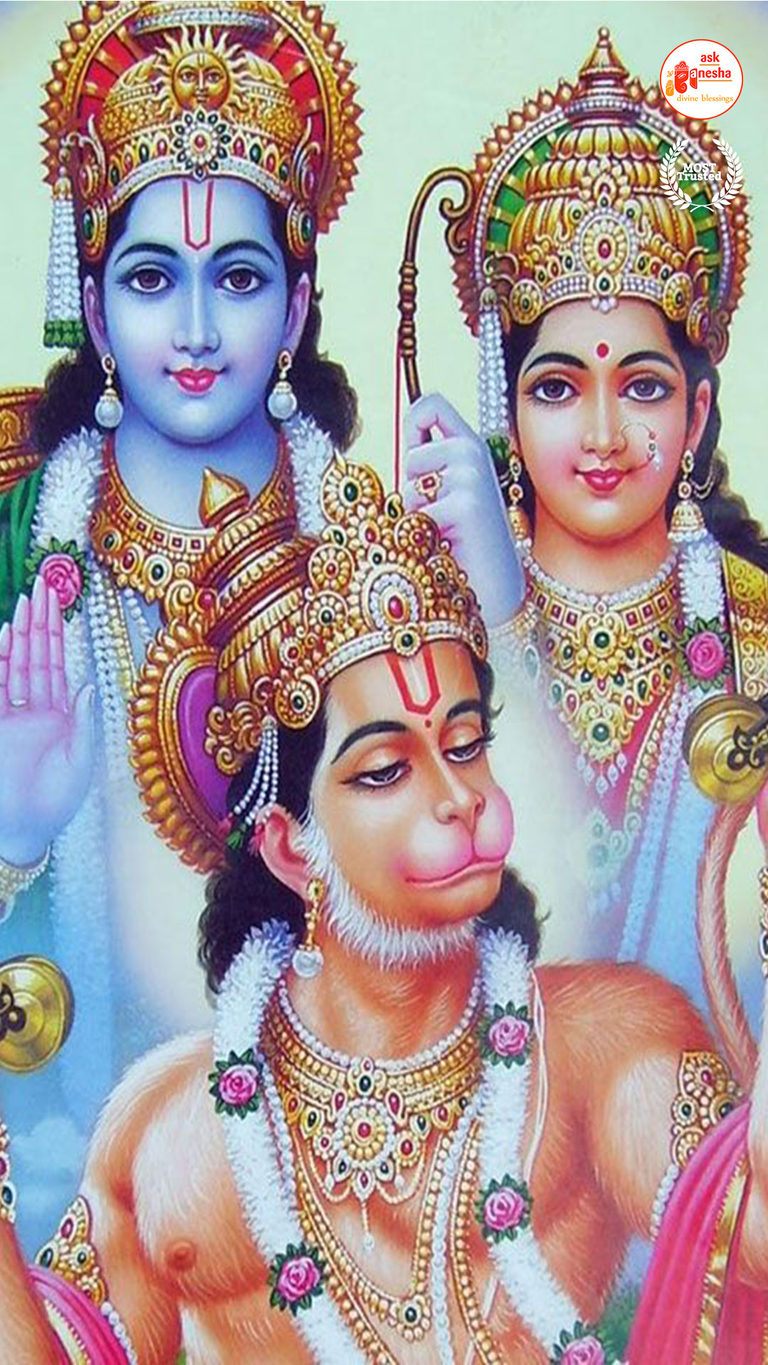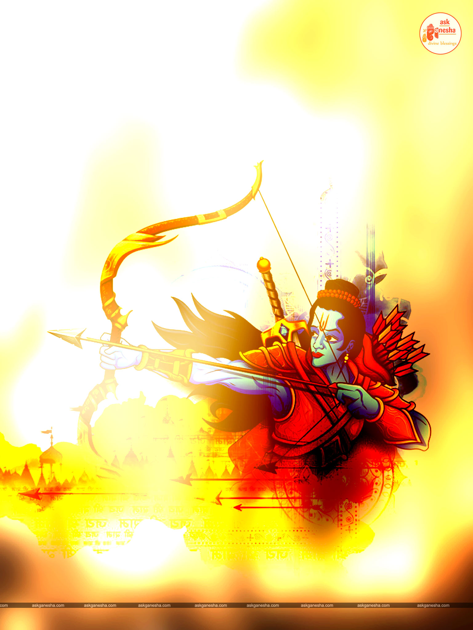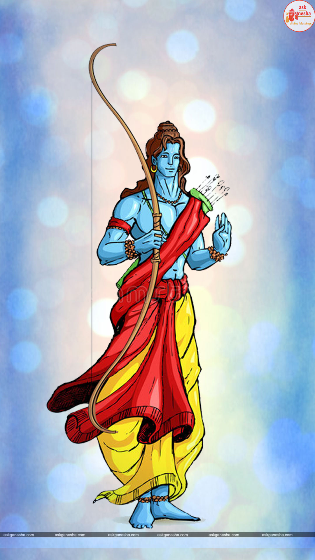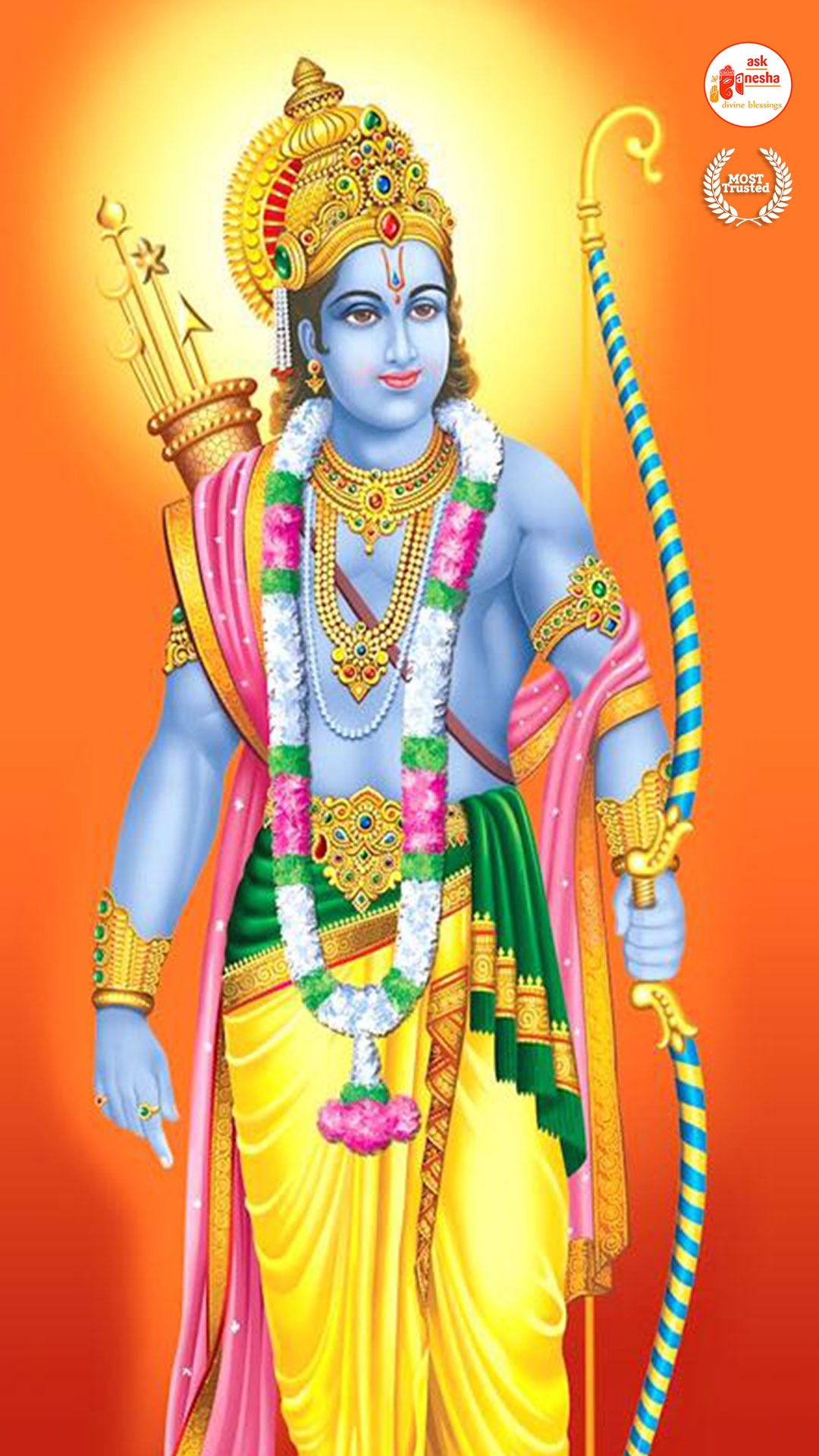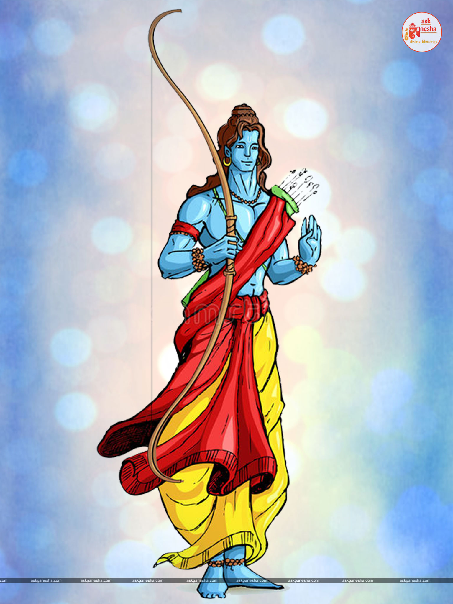 As Lord Ram is the preserver of the universe, people have deep-rooted faith in him and pray to him in their time of troubles. Askganesha has come forward with remedial wallpapers of Lord Rama which can be installed on the electronic gadgets by the devotees of the Lord. These are beautiful wallpapers depicting different aspects of Lord Rama. He is shown as a warrior, finishing all the difficulties and negativities of life. He is shown as a loving husband and a passionate Lord to his devotees showering his love on them.