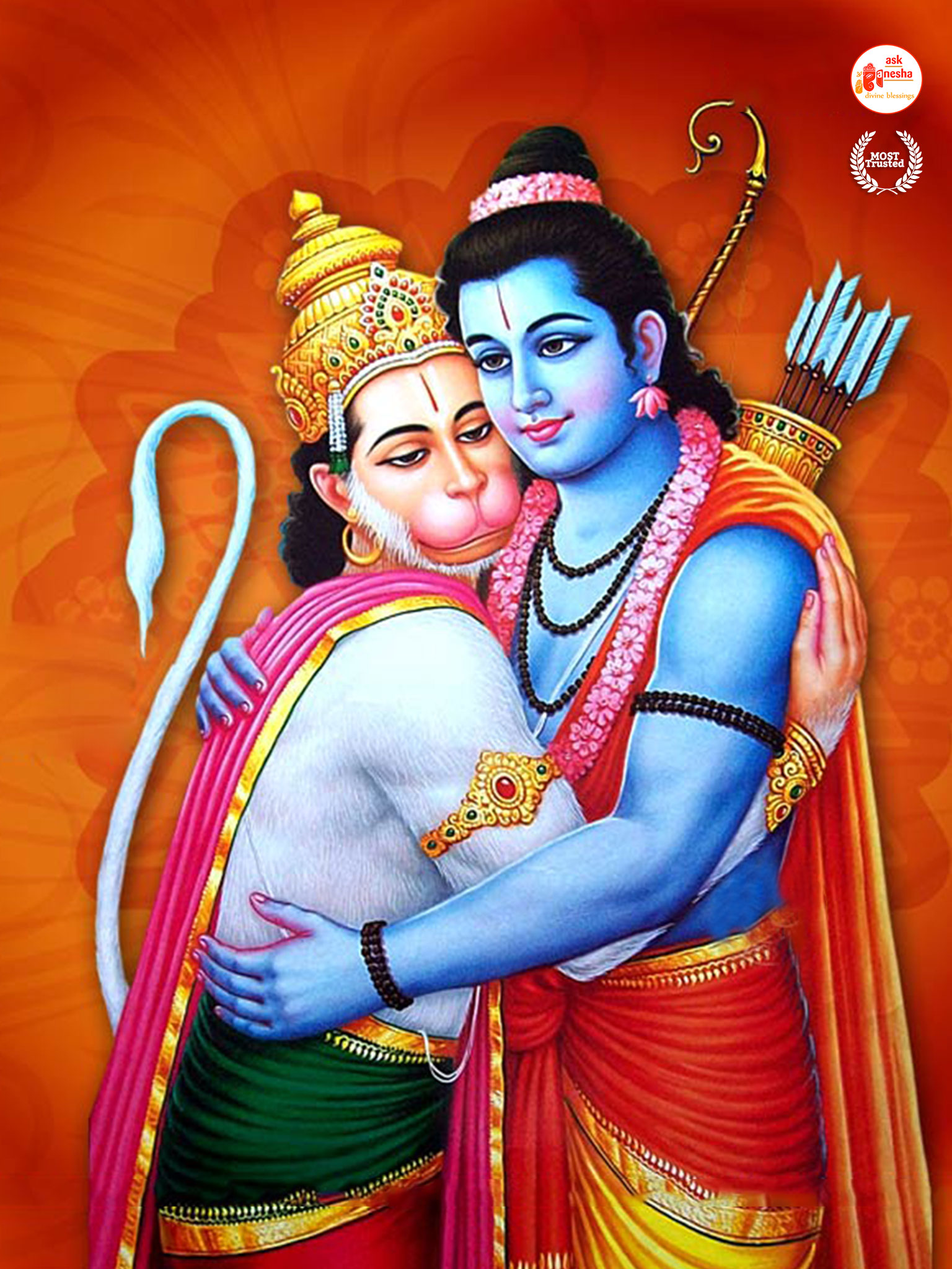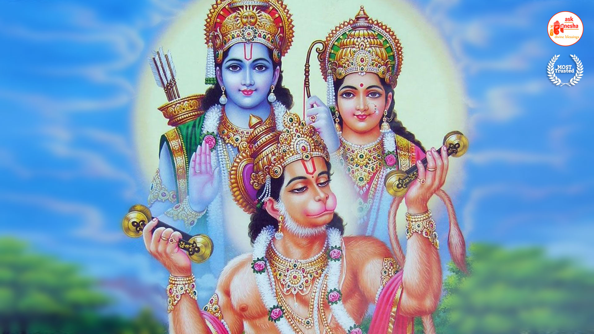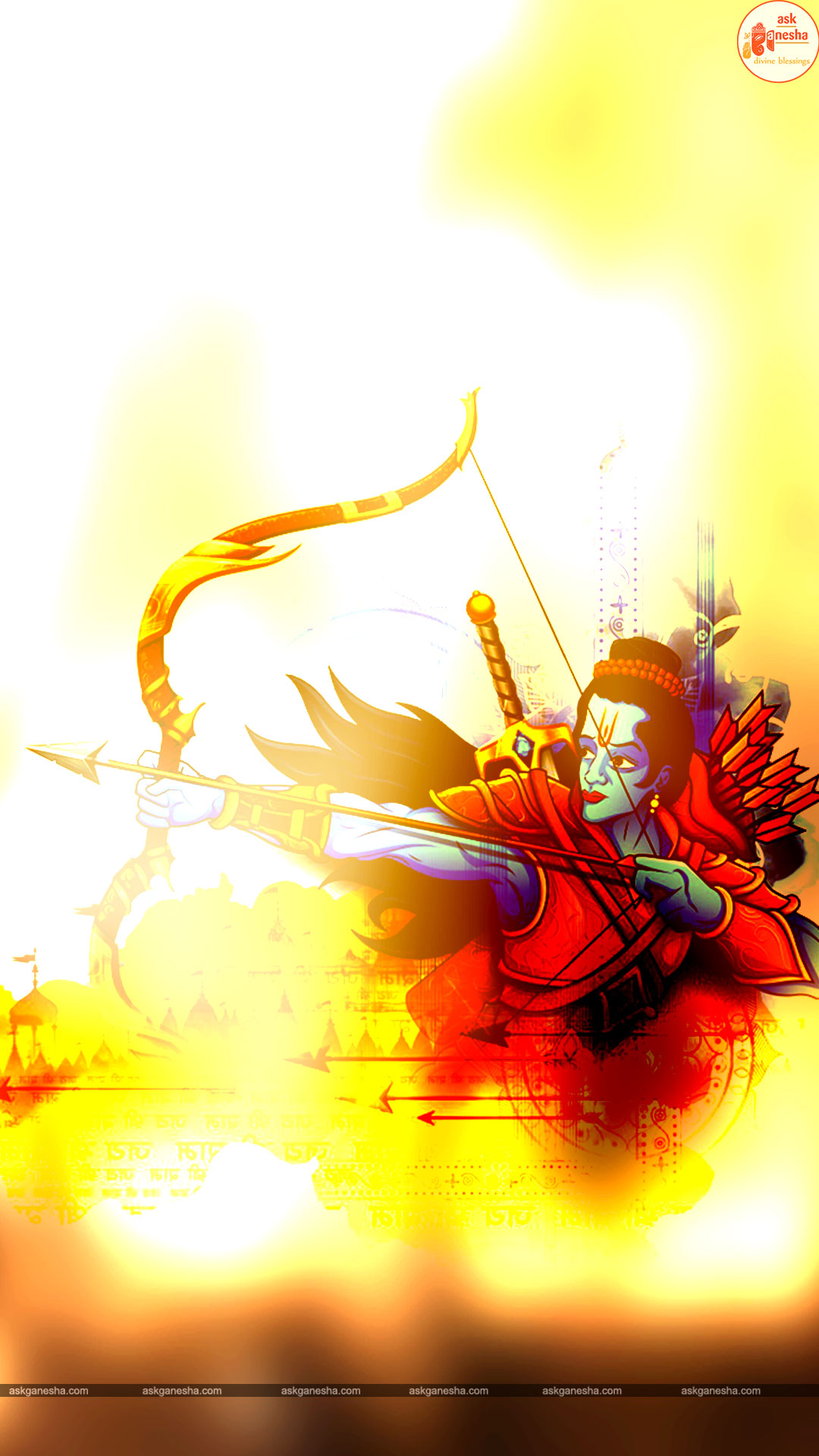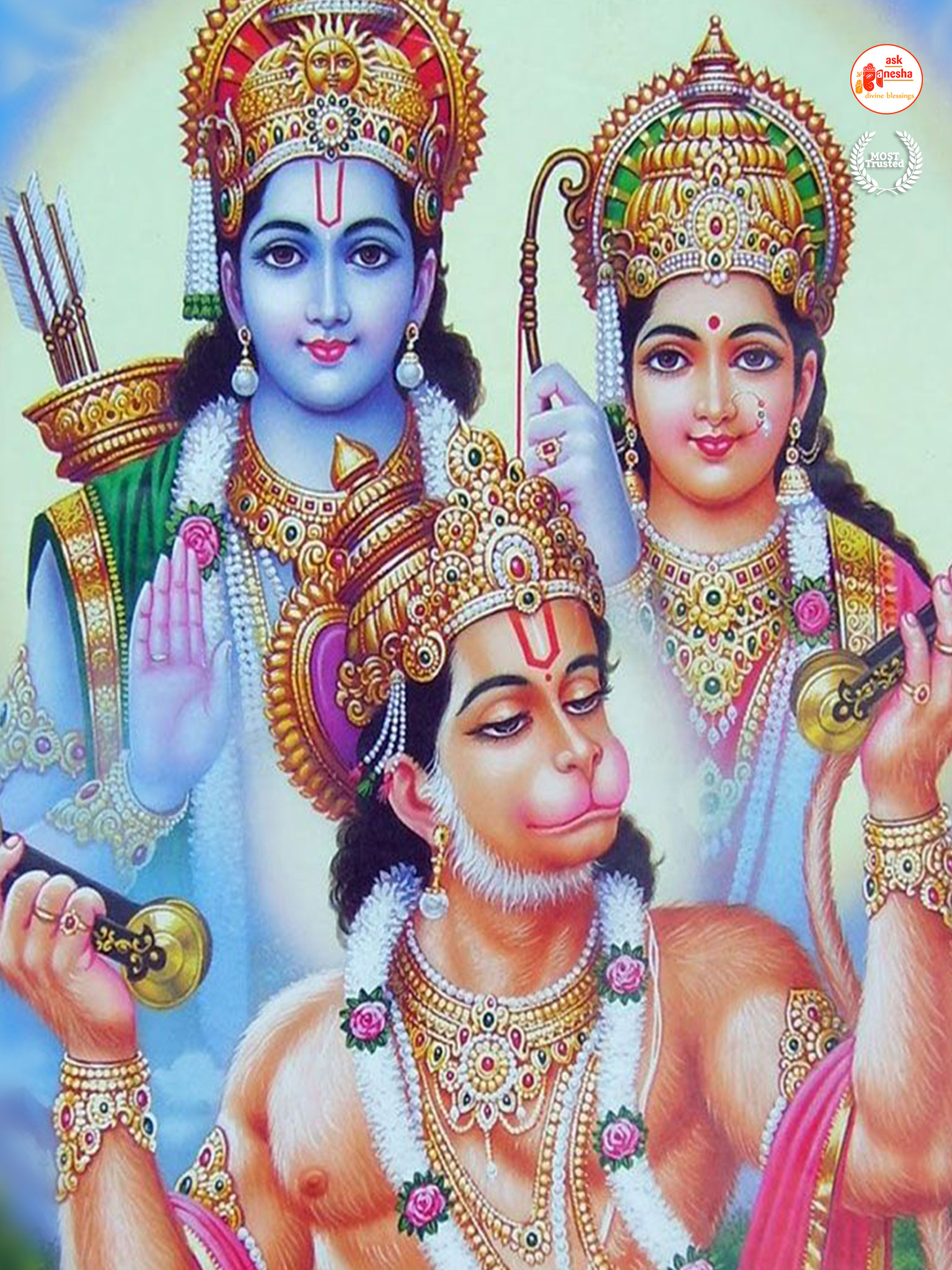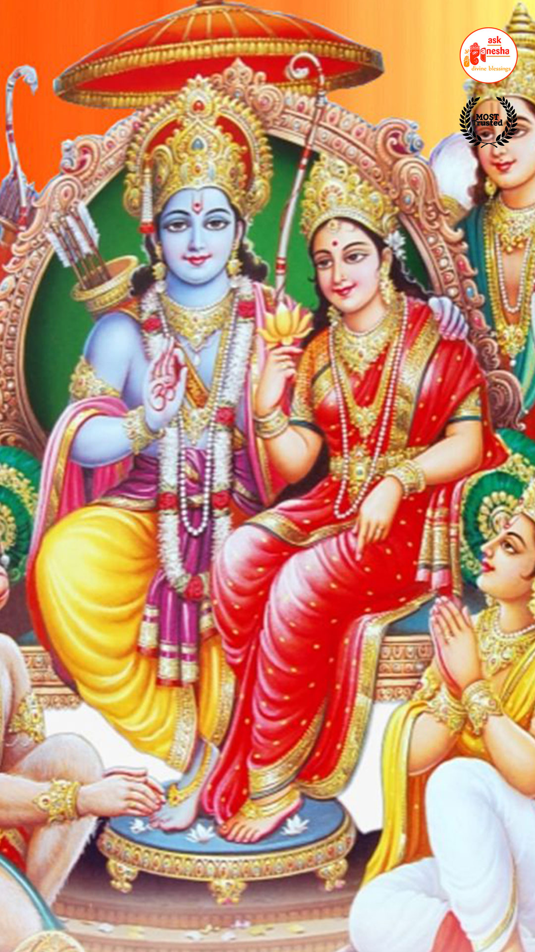 As Lord Ram is the preserver of the universe, people have deep-rooted faith in him and pray to him in their time of troubles. Askganesha has come forward with remedial wallpapers of Lord Rama which can be installed on the electronic gadgets by the devotees of the Lord. These are beautiful wallpapers depicting different aspects of Lord Rama. He is shown as a warrior, finishing all the difficulties and negativities of life. He is shown as a loving husband and a passionate Lord to his devotees showering his love on them.