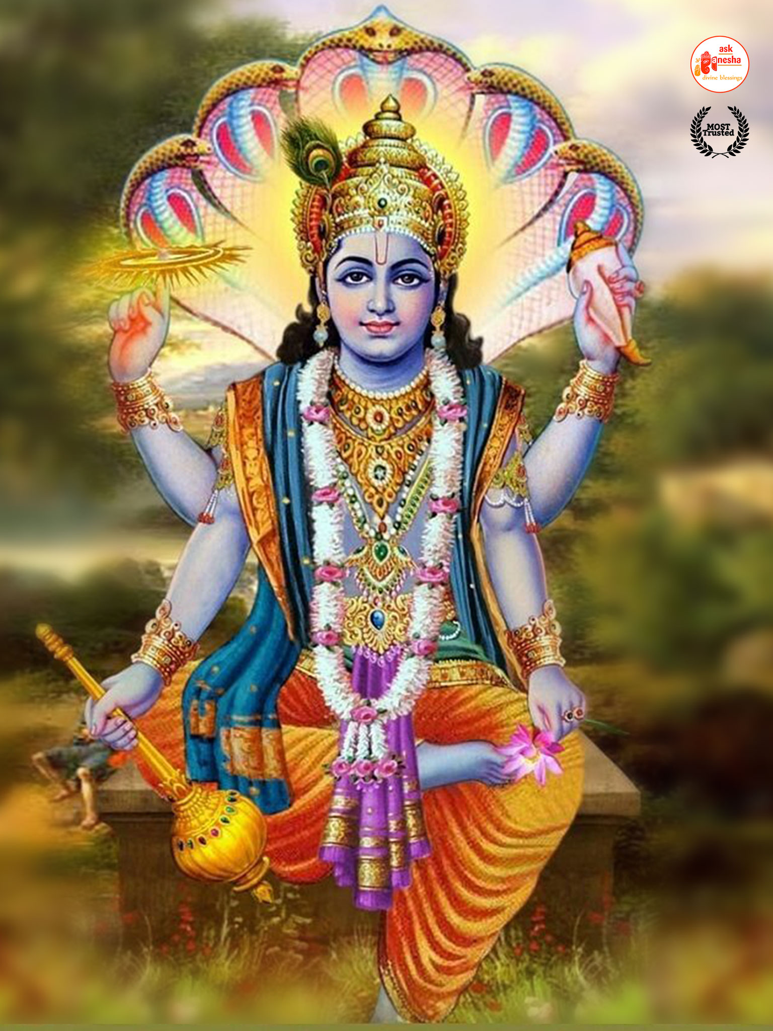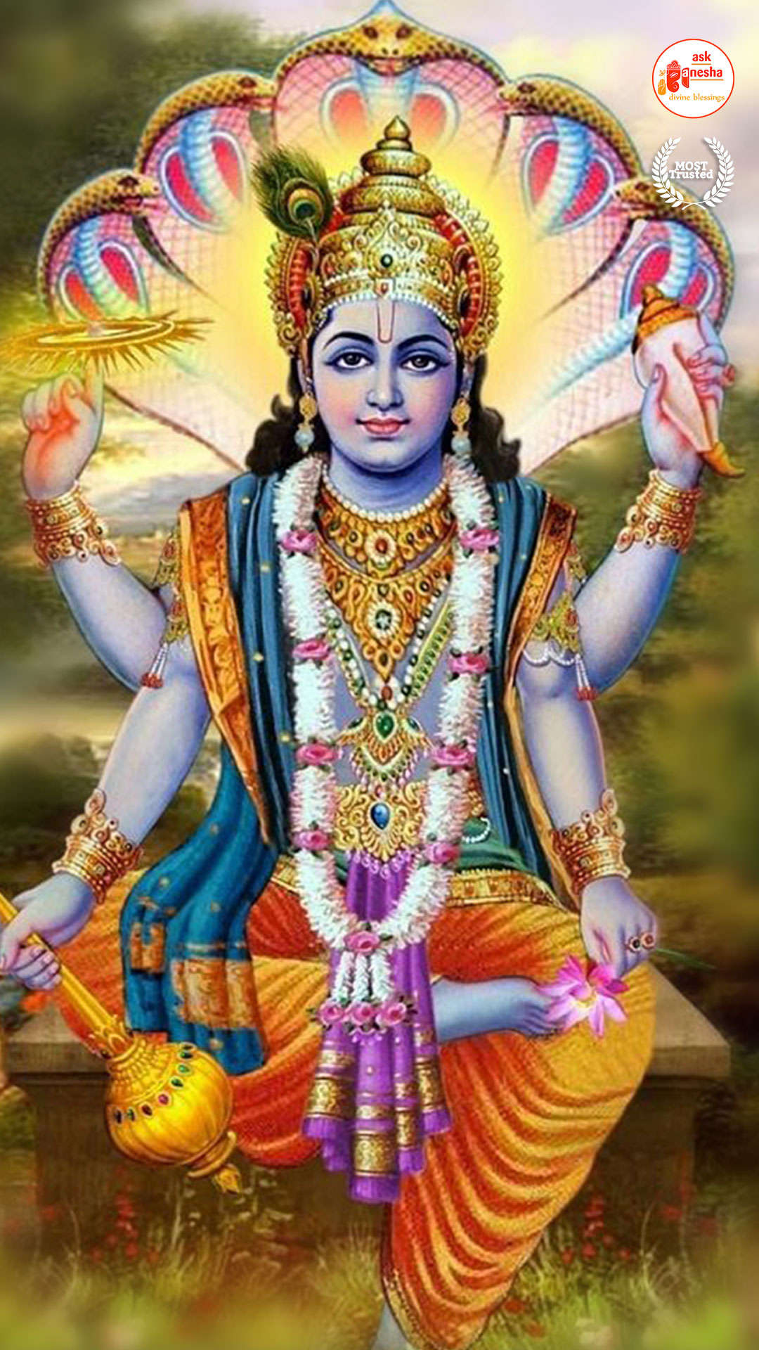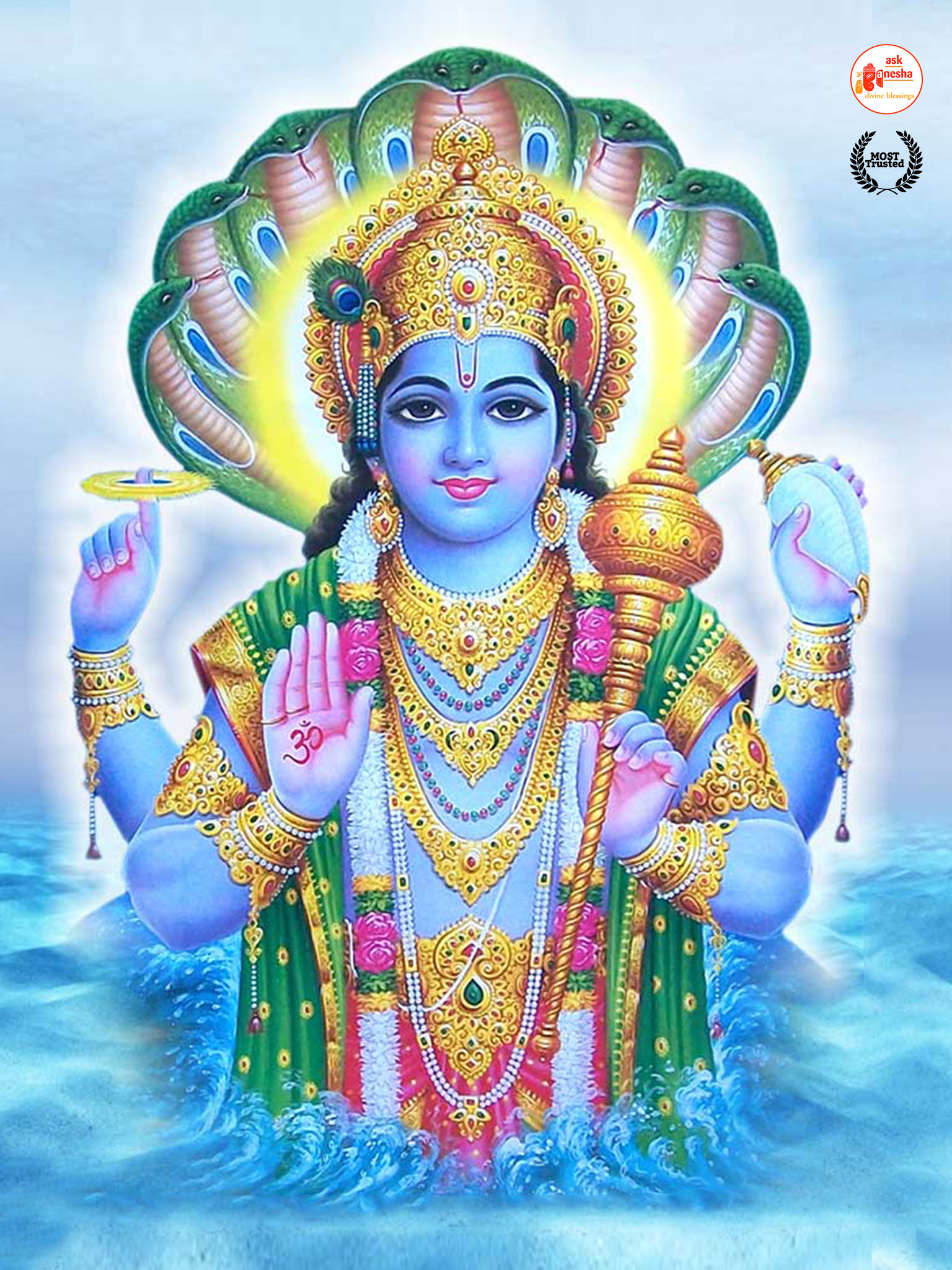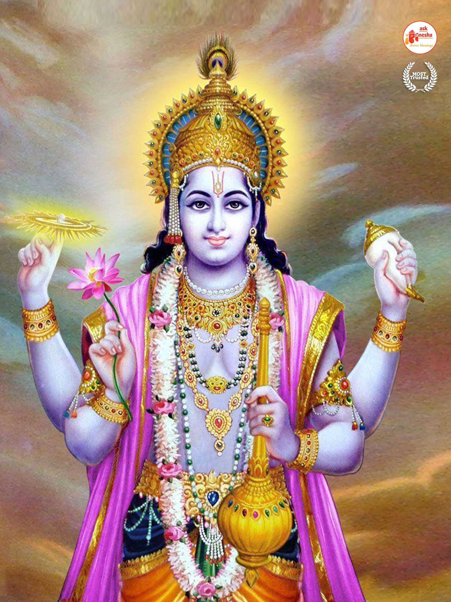 Lord Vishnu is considered to be the preserver of the world among the Tri Murti. He is also known as Narayan. He is considered as the Supreme Being who creates, nourish, protect and transforms the universe.